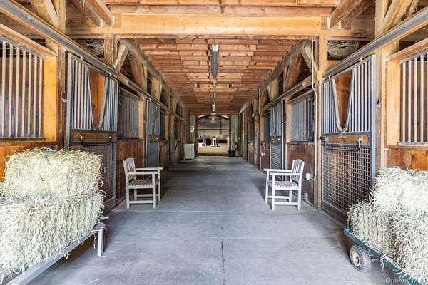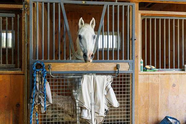 Designed with horses in mind, the farm features a 10-stall barn with wash stall (hot/cold water), heated and cooled tack room, 180' x 80' indoor arena, outdoor arena, and 10 paddocks - each with electric and heated auto water. Trails for riding or walking wind through the grounds, and a spring-fed pond adds to the idyllic setting.