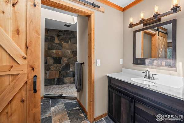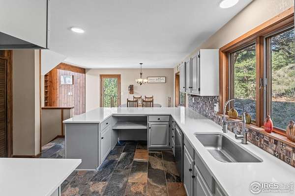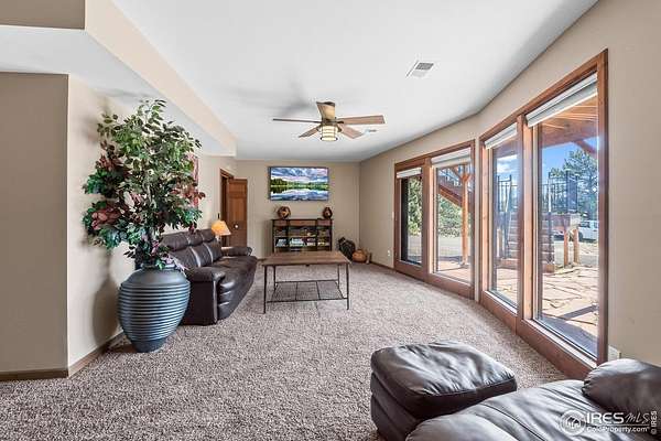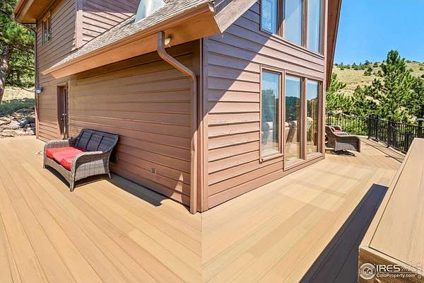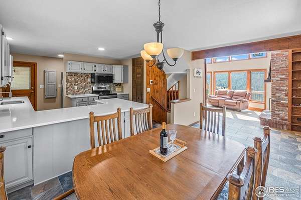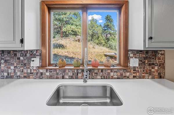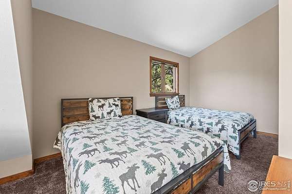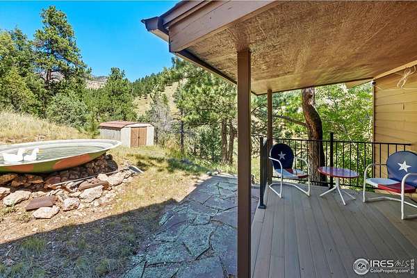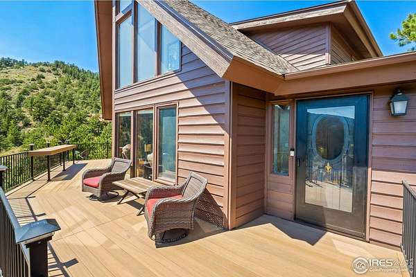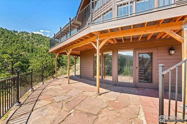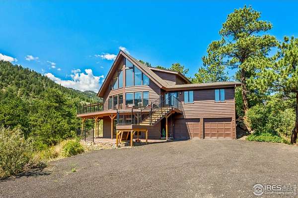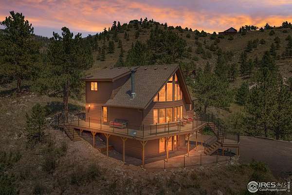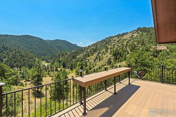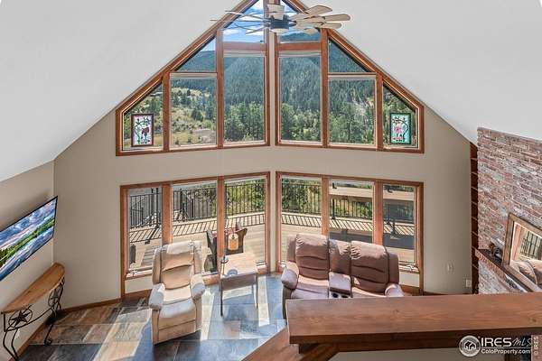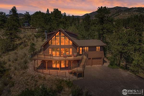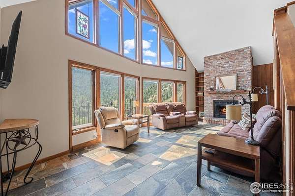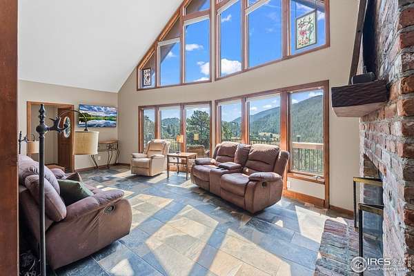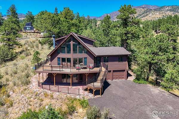 Imagine a stunning mountain home, nestled on over 4.5 acres amidst towering peaks, while offering an unparalleled sense of tranquility and connection to nature found only minutes to Loveland and Estes Park! Upon entering this Glen Haven home, your greeted with abundant natural light from the living rooms floor to ceiling windows that draw the eye outward, creating an uninterrupted flow between the meticulously updated interior and the awe-inspiring scenery outside. The new natural wide stone tile flooring and vaulted ceilings lay the foundation for a space that is both elegant and welcoming while maximizing views from every direction. A large, floor to ceiling stone-clad fireplace serves as the heart of the living room, inviting cozy gatherings on cool mountain evenings. The kitchen, designed for both functionality and aesthetic appeal, boasts stainless steel appliances, newly updated cabinets/hardware and lighting, and is perfect for entertaining or enjoying casual meals with loved ones. The large primary suite conveniently located on the main level features an en suite bath, and walk in closet. The magnificent, large walk-in shower is beautifully accented with stone-tile walls and floor, and has multiple showerheads for a truly immersive and spa like experience. Upstairs you will find the 2nd bedroom and full bath along with a large loft which could easily be converted into a 4th bedroom as it is currently being used as a sleeping space fitting 2 full size beds and a closet. The large basement rec room is great for evening game/movie nights. and hosts another large bedroom, and powder room. Outside the newly finished large wraparound trex deck welcomes the cool,crisp, mountain air, carrying the scent of pine and the sound of a nearby rushing stream. This home is the one you've been waiting for!