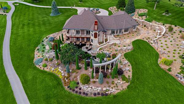 Beyond a private stone gate and winding drive lies an estate unlike anything Iowa has seen-crafted not just as a residence, but as a legacy. Set on nearly 18 acres of manicured grounds, every view is framed by sculpted gardens, cascading water features, and a koi-filled pond that feels more like a work of art than landscape. Inside, grandeur unfolds with Corinthian columns, soaring ceilings, and masterful millwork that speaks to timeless craftsmanship. The primary suite is a retreat of indulgence, from the marble-clad spa bath to a custom dressing room designed with the elegance of a European boutique. Beyond the main residence, an exceptional outbuilding offers an additional bathroom, custom cabinetry, and abundant, adaptable space-equally suited for a car collection, boats, or a private workshop. A chateau-inspired pump house, full-property Cummins generator, and rare privacy complete the picture. With its sweeping acreage, the estate carries the flexibility for future visionaries-preliminary concepts exist for a limited subdivision, available upon request. For the discerning buyer seeking rarity, presence, and beauty that must be experienced to be believed-this is it. The estate offers far more than can be captured here; additional details and private showings are available directly through the listing agent. Every element, indoors and out, reflects a commitment to artistry and enduring quality, ensuring its stature for generations to come!