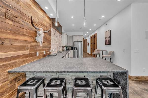 The home offers 4,082 sq ft of thoughtfully designed space. The main kitchen features Samsung and Bosch appliances, induction cooking, instant hot water, and custom cabinetry with soft-close drawers and under-cabinet lighting. A full summer kitchen with additional refrigeration, 50-lb ice maker, and convection/air fry oven makes entertaining easy.