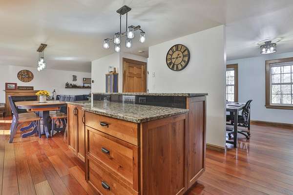 Welcome Home to this charming home in a peaceful country setting that sits on just over 2 acres. Step into the open foyer and notice the stunning hardwood floors that flow seamlessly throughout the main level, enter into the updated kitchen with granite countertops and granite island. Great kitchen layout with dining area. Opens to the front to back living room with gas fireplace. Great layout for entertaining. Working from home? Enjoy the office space off the kitchen. Upstairs offers a primary bedroom with walk in closets. Plus two additional bedrooms and a full bath. The primary bedroom has access to the full bath. 2 car garage under with room for your tools. New heating systems with heat pump/forced hot air. Propane gas. Plus full house generator on demand. First showing at Open House Saturday, 4/25 10:30-1:30 pm and Sunday, 4/26 10:30-12:30.