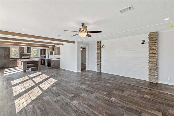 Absolutely stunning, top-of-the-line 2019 mobile home offering over 2,069 square feet of beautifully designed living space, situated on a peaceful 2-acre lot with mature trees in Singer. This home shows like new and is loaded with upgrades throughout. The spacious, open-concept layout features a huge kitchen with an abundance of cabinetry, an oversized center island, and quality finishes, perfect for entertaining or everyday living. A separate butler's pantry/mudroom off the kitchen adds exceptional functionality and storage. The large living room is highlighted by wood beam accents, creating a warm yet modern feel. This 4-bedroom, 2-bath home offers generous room sizes throughout. The primary suite is a true retreat with a massive walk-in closet, soaking tub, separate shower, and double vanities. All secondary bedrooms are spacious, with one offering an additional large walk-in closet. The fourth bedroom, located just off the living room and accessed by a barn door, provides flexible space ideal for a home office, study, or second living area. Additional features include a built-in office nook with desk space in the hallway, a brand-new sewer system, and thoughtful design details that elevate the home's overall quality. Outside, enjoy the privacy and beauty of a 2-acre setting with mature trees, offering plenty of room to relax or expand. Located in Flood Zone X -- no flood insurance required. This home must be seen in person to fully appreciate the craftsmanship, space, and like-new condition. A rare opportunity in Singer combining modern comfort with country living.