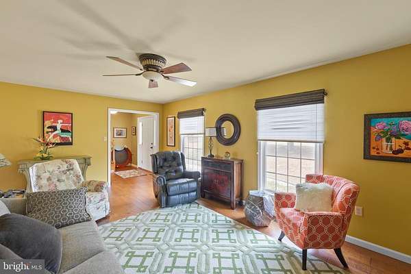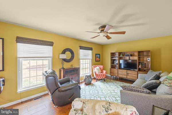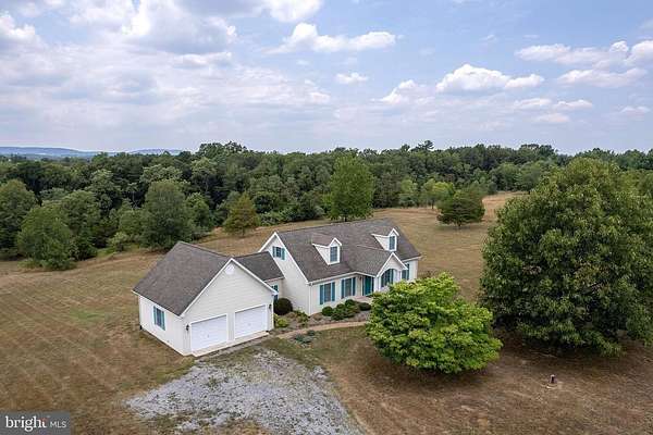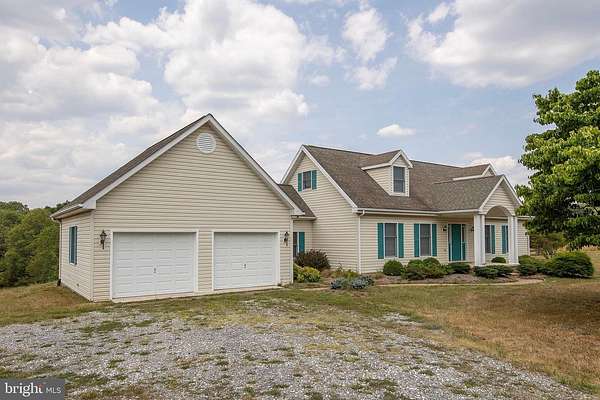 This charming Cape Cod-style home features two stories and boasts over 1,800 square feet of well-designed living space. The main floor includes a spacious primary suite with a large walk-in closet, a separate shower, and a luxurious soaking tub. Conveniently located on this level, the main half bathroom is equipped with a washer and dryer for added ease. The heart of the home is the expansive kitchen, complete with a wall oven, gas stovetop, dishwasher, and ample cabinet space. An adjacent dining area provides a perfect space for family gatherings, while a cozy sitting area connects the garage to the kitchen, enhancing the home's charm. A large living room and a welcoming foyer complete the main level. Upstairs, you'll find two additional large bedrooms and a full bathroom, providing plenty of space for family or guests. The home features dual-zone heating and air conditioning for year-round comfort. Set on a quiet road with no through traffic, this property is beautifully landscaped to complement the home. It's ideally located just 45 minutes from Winchester, VA, and a short drive to Washington, D.C., making it perfect for those who want a peaceful retreat with easy access to city amenities. An unfinished basement and a two-car attached garage add to the home's excellent features and layout.