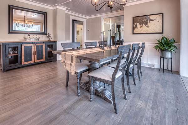 From the moment you step inside, you're embraced by the warmth of a chef's kitchen that lies at the heart of the home. This culinary haven features premium appliances, generous workspace, and an inviting atmosphere for creating memorable meals. Adjacent to the kitchen, a sunroom bathes the home in natural light and frames the stunning beauty of your surroundings, connecting you to the great outdoors no matter the season.