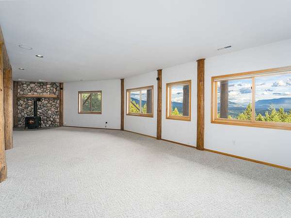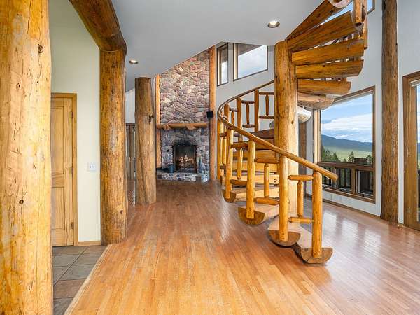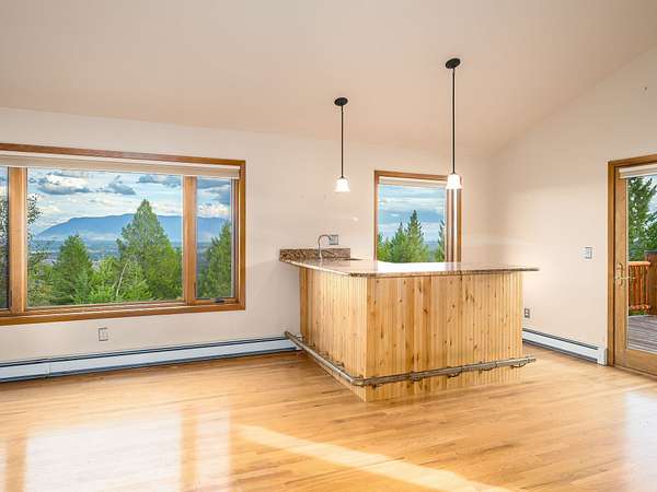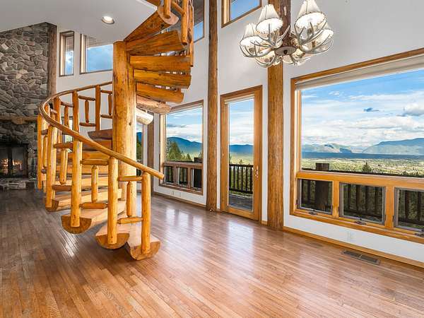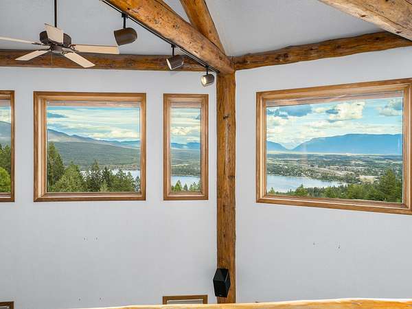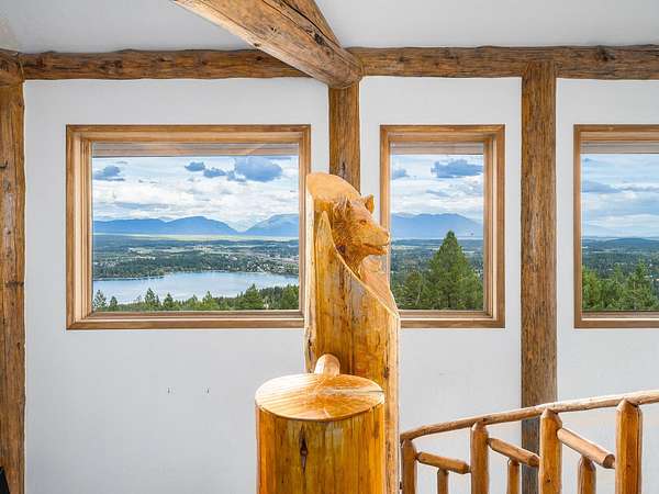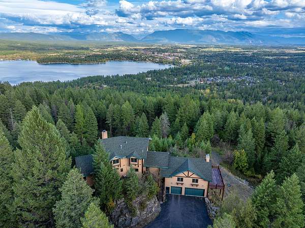 Amazing Whitefish Lake, valley and mountain views from this home nestled amongst the forest and rock outcroppings in Wolftail Pines. End of the road privacy with this 10 acres that is only 4 miles from downtown Whitefish and Whitefish Lake. The home is multi level and provides private living areas throughout the home. The main level has the primary suite, living room with river rock fireplace, dining room, kitchen and powder room. A hot tub sits on the wrap around deck. Upper level has 2 bedrooms and a bath. The family room on the southern wing has a wet bar, bath, and large deck. The lower level has a generously sized bedroom, bath, family room with wood stove and mechanical room. Additional closets throughout the home provide ample storage. Attached oversized triple garage off the paved driveway.
