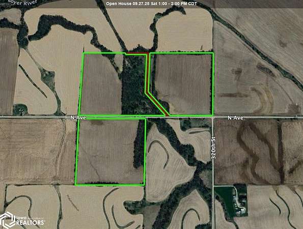 AUCTION! TRACT 1: 77.75 Acres, with house Building Descriptions: Shed 10 x 60 built in 1965, Shed 16 x 12 built in 1992, Wire Grain Bin Legal Description: SW SE, SE SE Section 3-83N-38W Soil Productivity: 79.9 CSR2 Taxes: $3,226 Annual Real Estate TRACT 2: 39 Acres Legal Description: NW NE Section 10-83N-38W Soil Productivity: 73.8 CSR2 Taxes: $1,426 Annual Real Estate Possession Terms: Immediate possession of the house and buildings at closing, and landlord possession of the farm ground at closing. Earnest Deposit: 10% due upon Seller's acceptance of your bid Tenancy: The farm is rented for the 2025 season. *THIS PROPERTY WILL SELL AT AUCTION. THE PRICE SHOWN IS NOT REFLECTIVE OF THE ASKING/SALES PRICE.