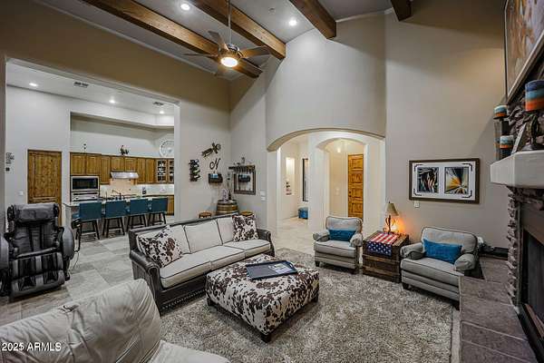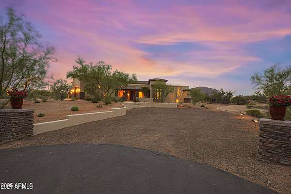 Motivated sellers!! Secluded 3,000+ sq. ft. custom home on 1.99+/-acres in Northern Scottsdale's stunning desert. Get the Scottsdale address without the city tax!! Majestic mountain views, chef's kitchen with Sub-Zero and Wolf appliances. Open resort-style backyard with pool, waterfalls, fireplace, BBQ, and large patio for unforgettable sunsets. No HOA or CCRs-enjoy freedom in a quiet cul-de-sac near Granite Mountain, with RV parking (50-amp hookup), medical-grade air filtration, and space for horses or a casita. Your Arizona dream starts here-tour now!