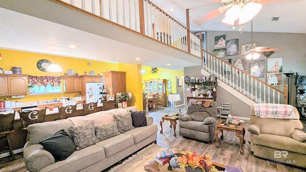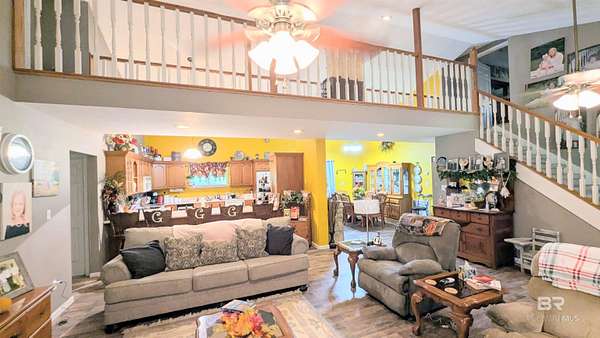 Ultimate Country Living!! Welcome to this captivating 1.5-story haven, nestled on 2 lush, private acres of tranquility. This isn't just a house; it's a dream come true, featuring an impressive 5 spacious bedrooms and 2 full baths, where every corner radiates warmth and charm.As you step inside, you're greeted by a grand living room that exudes elegance, boasting a soaring 15-foot vaulted ceilings that creates an airy, open atmosphere complete with a cozy fireplace. The expansive kitchen is an entertainer's & chefs dream, featuring plenty of cabinetry, countertop space & a massive, inviting bar that beckons for lively gatherings making every meal a celebration!On the main level, 3 generously sized bedrooms await, including the luxurious primary suite. This sanctuary is a true retreat, featuring a spa-like ensuite bath that boasts a spacious walk-in shower and a stylish double sink vanity--your personal oasis for relaxation. Venture upstairs to discover 2 additional impressive bedrooms, ideal for guests or members seeking their own slice of serenity.Step outside and be captivated by the picturesque wraparound porch, where breathtaking views of a serene wooded wonderland unfolds before you with majestic oaks, towering pines, and vibrant blueberry & scuppernong vines.And let's not forget the superbly spacious detached two-car garage, offering invaluable storage spaces and plenty of room for vehicles, hobbies or projects. This isn't just a property; it's an irresistible lifestyle opportunity waiting for you to seize! Whether you envision hosting unforgettable gatherings, enjoying peaceful country living , or simply basking in the beauty of nature, this extraordinary home has it all! You'll say "WOW!" the moment you set foot on this property! Don't let this gem slip away! Embrace the excitement of country living and make this enchanting escape your very own! Call and schedule your private tour TODAY! Buyer to verify all information during due diligence.
