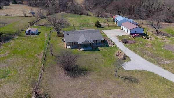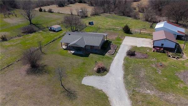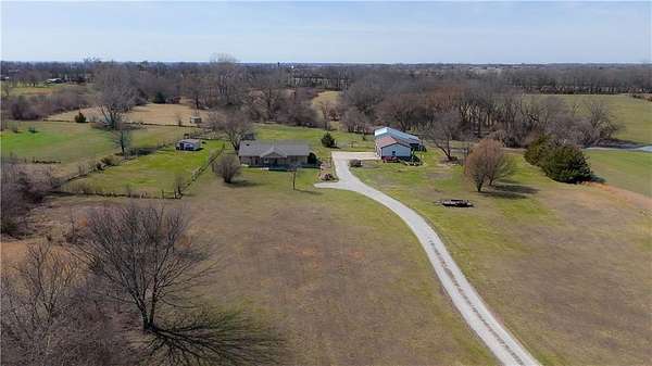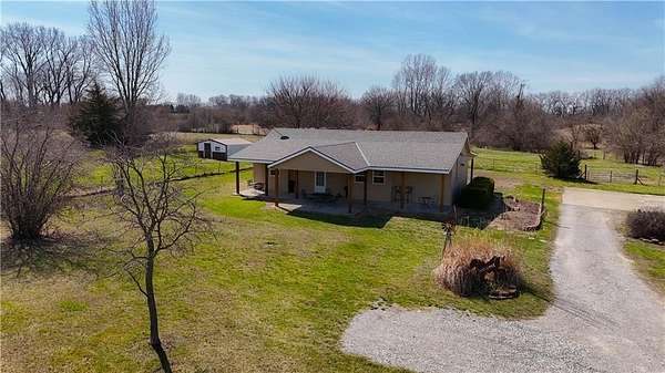 Wonderful home, on 14.5 acres, nestled far off the road with NEW HVAC, NEW ROOF and completed inspections just for YOU! Your days will begin with a great view of the sunrise and end with a peaceful view of the sunset. One level living is so convenient! Newer items include LVL flooring and bathroom updates. This special property has been home to Clydesdale and Quarter horses, goats, cows, and pigs. Each outbuilding and fenced in areas have been lovingly used to raise and enjoy them all. The 24 X 36, 3 car detached garage, with concrete floors, is perfect for additional storage and many uses. The 40 X 60 barn has 5 horse stalls and 3 goat stalls. So many options with a total of 18 10 X 12 rooms! Enjoy relaxing outdoor time? You have two great options to enjoy the scenery of this fully fenced acreage with two ponds. The east facing, covered, front porch expands the full width of the house. The west facing covered patio is perfect for enjoying your morning coffee. Apple, pear and plum trees as well as wild berries grow on this acreage. Be sure to check out the walkthrough and drone virtual tour that show off our new roof and wonderful home!