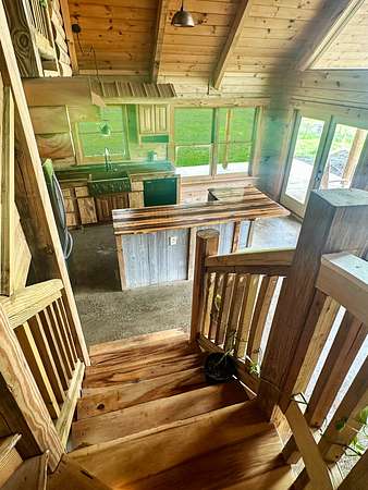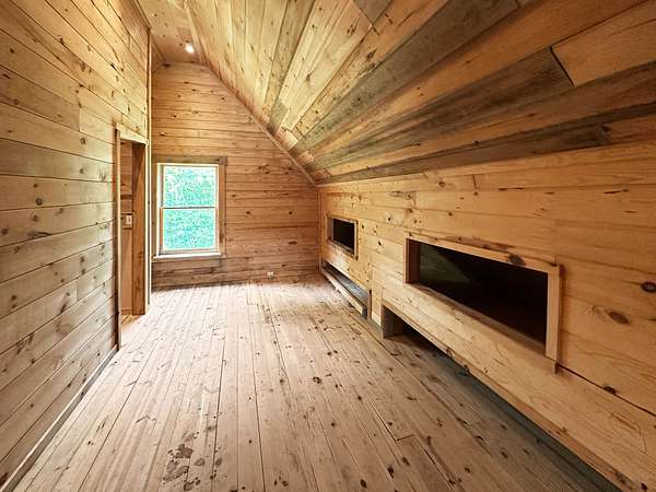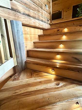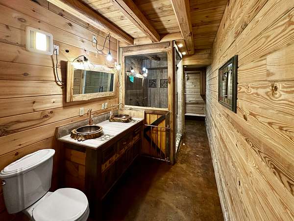 Inviting Loft Suite: The second-floor loft is a perfect retreat, featuring built-in bunk beds with trundle beds and a full bathroom, complete with a rustic log garden tub for ultimate relaxation.