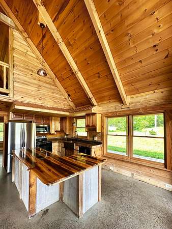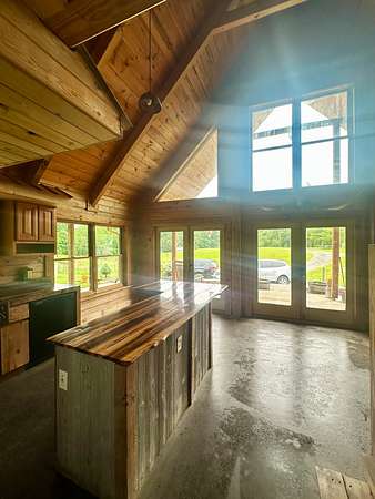 Spacious & Open Layout: High ceilings and a wall of windows that flood the home with natural light, providing breathtaking views of the surrounding countryside. Three glass doors offer seamless access to the wrap around porch.