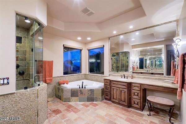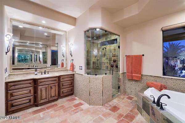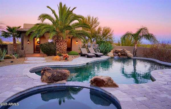 PRICED TO SELL! MOTIVATED SELLERS! Over 1.6 acres of desert oasis! Welcome to North Scottsdale perfection as you step into over 4200+ square feet of high end Sonoran beauty. HEPA FILTER included! With panoramic mountain views and a lush backyard, your resort style living awaits. Featuring 4 bedrooms in the main house, and a fully equipped guest house for your 5th bedroom, there is plenty of room for all. This Hacienda offers a spacious great room with a statement piece bar, vaulted ceilings, versatile office space, and so much more. As you a step into your chefs kitchen, you are reminded of what real sonoran craftsmanship is all about. Granite counter tops, premium finishes, solid alder doors, Canterra stone accents throughout and century-old Mesquite Wood Doors. The Master bath is adorned with French roof tile as flooring. This resort style home could yours to call home! Don't miss this opportunity to own a little piece of North Scottsdale paradise!