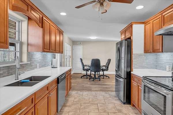 The 1,893 sq ft home features tile and LVP flooring throughout, large covered front and back porches, and a cleared backyard ready for entertaining or relaxation. Electrical hookups are already in place for an above-ground pool, along with a dedicated 100-amp box for RV parking or electric vehicle charging.