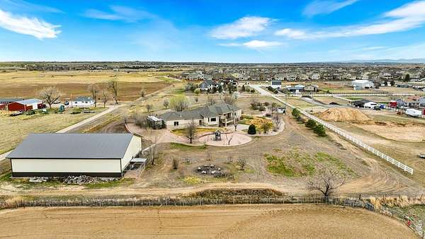 Some properties are simply places to sleep. Others become the backdrop of your best years-where memories are made, passions are pursued, and mornings begin with a view that reminds you just how good life can be. This extraordinary West Brighton estate belongs firmly in that rare second category. Set on nearly four acres of Colorado land with no metro tax and no HOA, this property offers true ownership-the freedom to live, build, and grow exactly as you choose, without added restrictions or hidden costs shaping your future. Step onto the expansive back deck and patio and take in uninterrupted, panoramic views of Longs Peak, Colorado's iconic fourteener rising boldly on the horizon. Whether it's morning coffee under soft alpenglow or evenings around the fire pit beneath a sky full of stars, this setting transforms everyday living into something unforgettable. The home itself is both striking and enduring, featuring a full brick and stucco exterior paired with a 50-year Class 4 impact-resistant roof designed to withstand Colorado's toughest weather. Inside, six independent heating and cooling zones ensure personalized comfort throughout every season. Entertainment is elevated with a private, dedicated movie theater-perfect for immersive film nights.A four-car attached garage with epoxy floors balances style and function, while the 4,800-square-foot shop-with a commercial two-post lift-offers unmatched space for hobbies, business, or collection-worthy projects. The land is equally impressive, with a 2,000-square-foot irrigated garden, a 1,500-gallon cistern, and dedicated RV parking with full hookups. This is more than a home-it's a self-sufficient Colorado lifestyle defined by freedom, space, and possibility.