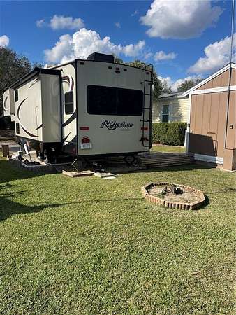 DEEDED RV LOT - FULL TIME OR PART TIME! Beautiful RV lot in the TOWN PARK area of Wilderness RV Park (55+), located on desirable NE 102ND AVE RD with NO HOMES ACROSS THE STREET for added privacy. Don't miss your opportunity to own this Lot with the option to purchase a well-kept 2017 GRAND DESIGN 5TH WHEEL($22,000). Lot features a fully finished, shed with CEILING FAN, GOLF CART CHARGING STATION, DRIVE-IN ACCESS, hot/cold water sink, NEWER 30-GAL WATER HEATER, NEW WASHER & DRYER, and TV/DVD. Plenty of room to set up your lawn chairs and look out the double doors to enjoy the outdoors. Lot includes a MOISTURE BARRIER WITH GRAVEL, paved walkways, and SMALL STOOP PORCH. WILDERNESS RV PARK offers resort-style 55+ living along the Ocklawaha River with beautifully maintained grounds and a peaceful natural setting. Amenities include TWO SWIMMING POOLS (one heated), hot tub, clubhouse with activities, game areas, shuffleboard, walking paths, and waterfront access for kayaking and wildlife viewing. The community is pet-friendly and conveniently located near Silver Springs State Park, shopping, dining, and Ocala National Forest. Residents love the connection to nature along with the active and social lifestyle.