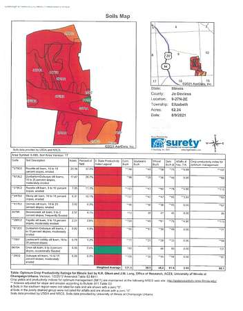 Located at the end of Mitchell Road with great views into the village of Elizabeth. Ideal Building site! Great Exposure for a full finished basement. . Must see to appreciate. River Ridge School District. Located in the heart of Jo Daviess County. Nestled in the hills between Elizabeth and Galena Territory, perched upon 62 acres of verdant grassland, high elevation and rolling hills featuring a private pond, breathtaking vistas for miles and amazing panoramas highlighting the stunning beauty of the surrounding Jo Daviess County. This property is among the picturesque valley views witnessed from the popular Scenic Overlook on Hwy 20. This valley is quite possibly the most beautiful valley in all of Illinois. Surrounded by hills, mature forests and abundant wildlife, it's an ideal location to become immersed in nature. Whether used to build as a getaway or permanent residence, in this serene setting, you can’t help but relax, have fun and enjoy life. Seasonal stream on property along with spring fed stocked pond. 45 plus acres of income. Electric on the property, but not yet connected. Well & septic would be needed to build. There is a 30 x 80 pole barn on property. With the close proximity to The Galena Territory Association (GTA) ; with ownership of a vacant lot & affordable membership you would have access to all of the GTA Amenities: Owners' Club with indoor and outdoor pools, fitness facility, outdoor tennis, multi-sport gym and game room. Lake Galena and the Marina Complex, The Shenandoah Riding Center along with the 24-mile Trail System and Greenspace provide over 1,900 acres of year-round outdoor recreation. and all of this is just a short drive to the restaurants, championship golf, and spa facilities of Eagle Ridge Resort & Spa on the GTA grounds.