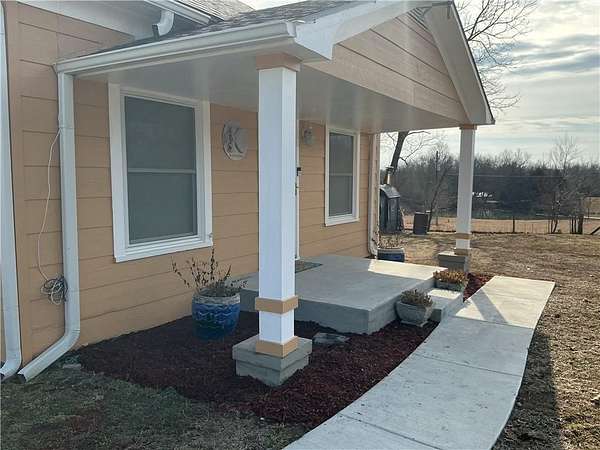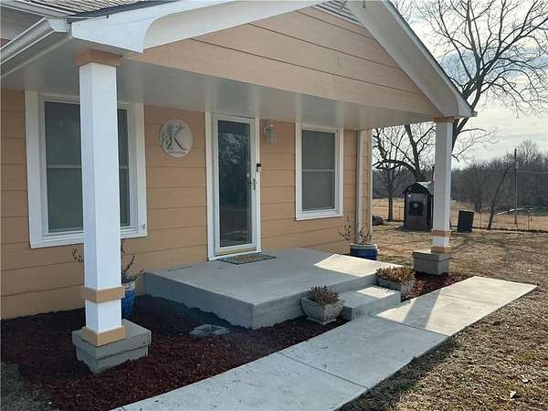 ESCAPE TO YOUR OWN PRIVATE SLICE OF THE COUNTRYSIDE! This Lovely Mini Farm offers rolling hills that lead back to a peaceful pond, mature trees, and a scenic creek. Perfect setting for Country Living! This home has been thoughtfully updated w/major improvements including -New HVAC system-New Exterior paint & fresh interior paint as well-Brand new sidewalk and front porch-New pressure tank on well-New water heater-Newer roof & windows & Remodeled Bath-Large back deck-fenced in front yard and back area for dogs-Multiple outbuildings include a chicken house,garage,storage buildings & a nicely finished outbuilding that had been used as a tanning salon but has endless possibilities as a home business-studio-office or guest space! Storm Shelter-ALSO external wood furnace as alternate heat source to home if you prefer that type heat! Additional acreage available ! Don't miss out on this charming home only 1/2 mile off paved road w/ easy commute to Ottawa-Lawrence or KC metro!