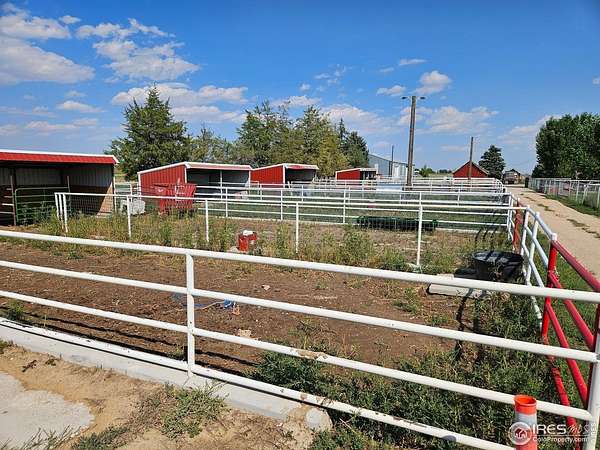 Est $7,370/moUnique 12 acre livestock and dog breeding facility located in west Greeley, this property features an irrigated grass pasture, 4 lean-to sheds with pipe fencing corrals that will accommodate horses, cattle, sheep, other large animals.104 X 40 metal shed, 48 X 24 metal building with office space & 6 dog kennels, 2nd dog kennel is 13 X 28 with 4 dog kennels. RV hookup, flower gardens, piped fencing with mesh that goes around the entire property. 1/7 interest in a Non Tributary Irrigation well. Come and see this property it has a lot of possibilities.