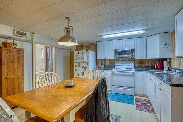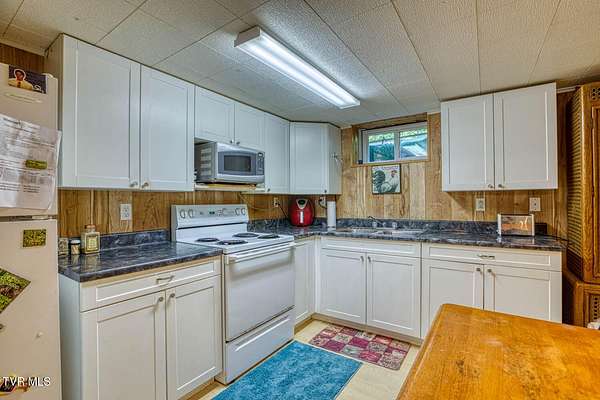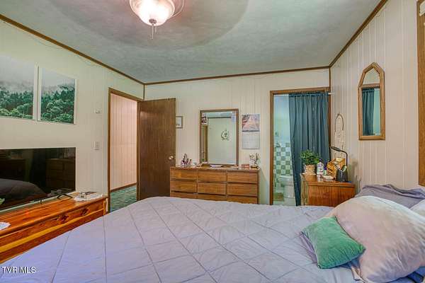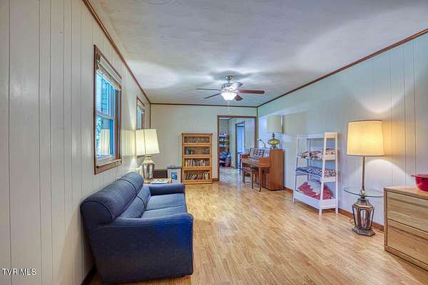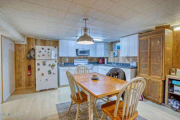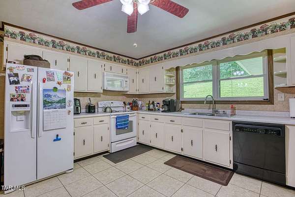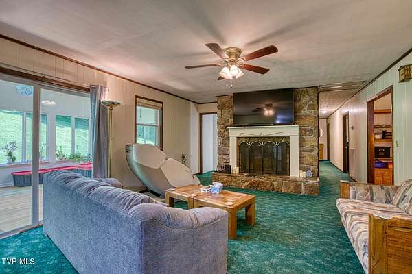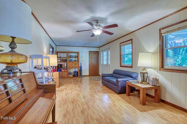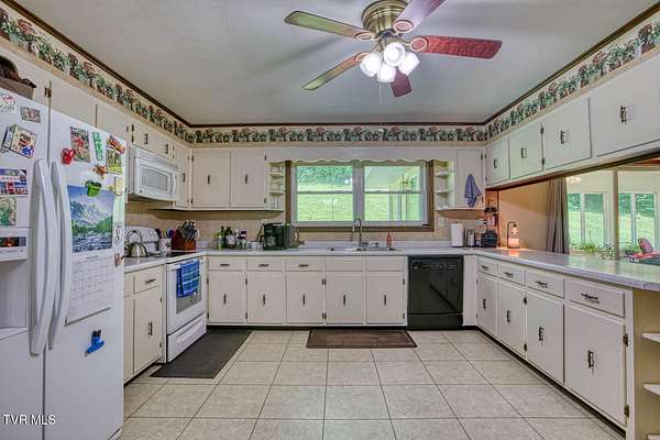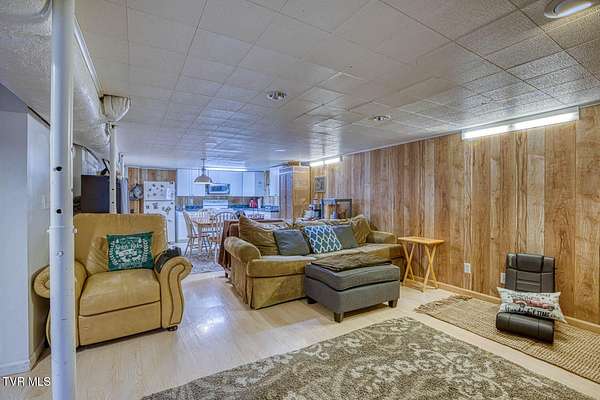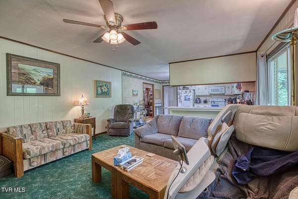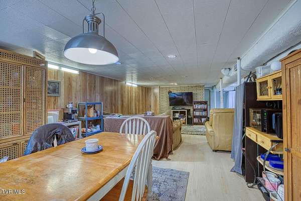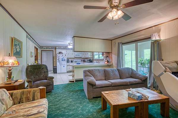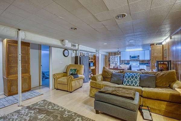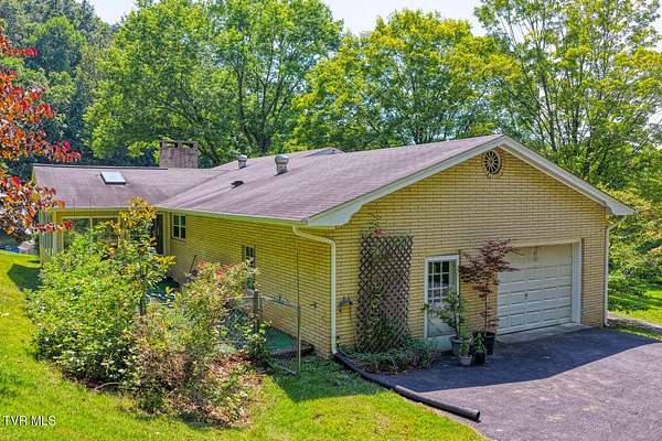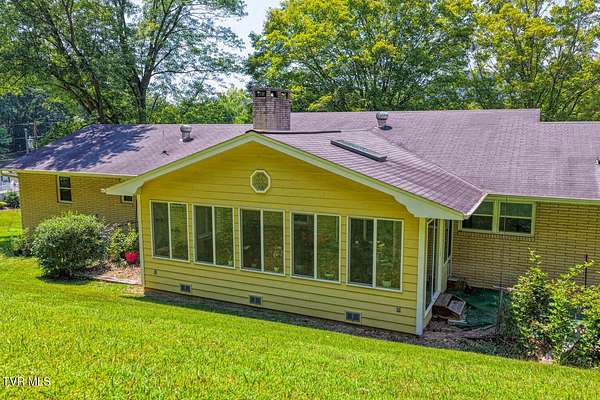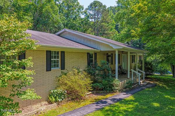 Charming and Peaceful Living.Nestled in the serene beauty of Rogersville, Tennessee, this delightful home situated on 2.6 acres offers the perfect balance of comfort, privacy, and convenience. Set against a backdrop of lush greenery, the property is an inviting haven for those seeking tranquility in a natural setting while still being just minutes from all the essential amenities. This 3 bedroom (currently used as a 4 bedroom) 3 bath brick ranch with basement has 1800 sq ft of finished living space on the main level.Step inside and be greeted by a spacious and well-designed interior. The open-concept kitchen/familyroom features large windows that fill the home with natural light, creating a warm and welcoming atmosphere. The kitchen is perfect for cooking and entertaining, with ample counter space and appliances.There is a fireplace in the great room The back sunroom is additional entertaining space. There is a formal dining room and a formal living room.The master suite is a peaceful retreat with an en-suite bathroom. The additional two bedrooms are generously sized and can easily be transformed into guest rooms, home offices, or hobby spaces.The basement can be used as a second family living space with full kitchen, living room, bath and bedroom. Drive under garage and lots of storage space and separate driveway. Outside, the large backyard provides the perfect space for relaxing, gardening, or enjoying outdoor activities. A covered front porch is ideal for morning coffee or evening sunsets, and the wooded surroundings provide extra privacy and a sense of escape from the hustle and bustle of daily life. Part of the property is located across the road and is bordered by a flowing creek. With easy access to local shops, restaurants, hospital, doctors and recreational spots, this home is a great place to enjoy the beauty of rural Tennessee without sacrificing modern conveniences. Plenty of storage space, including two garages. Quiet, well-established neighborhood with no through traffic. Large laundry room. More entertaining space across the road near the creek on this property. FIBER OPTIC INTERNET. NO RESTRICTIONS. Minutes to shopping, Walmart, doctors, hospital and many restaurants. Information deemed reliable but not guaranteed. Buyer/buyer's agent to verify all information.