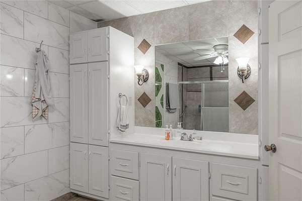 - Ceiling Fans(s), Laundry Room, Stained Wood, Window Treatments