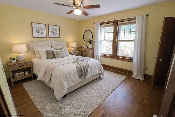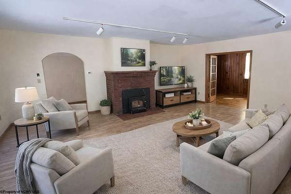2 ACRES IN TOWN NEAR DAVIS & ELKINS COLLEGE. With a little elbow grease, this board and batten sided home could look new again! It is situated alongside Harpertown road, convenient to Davis & Elkins College on a 2 acre sloped, mostly wooded parcel. This home features 2 bedrooms, 2 full bathrooms, living room with wood burning fireplace; hardwood floors are under the laminate floating floor, updated kitchen with all appliances, entry level of home provides a one stall integral garage with automatic opener, spacious storage closet and partial basement, which houses the laundry room. Home is heated with natural gas fired hot water radiators. If a 3rd bedroom is needed, there is a den off of the living room that could easily be modified into a third bedroom. This would make an excellent Airbnb for those investors seeking to increase their portfolio! *CONTACT THE LIST AGENT FOR A TOUR AND MORE INFORMATION* Photos digitally enhanced to show potential.
