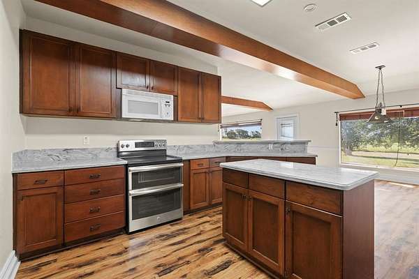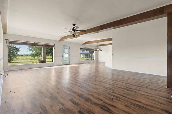 Experience the perfect blend of peace, space, and opportunity just minutes from I-35! Built in 2005 with durable steel beam construction, this spacious ranch-style home is built to last and designed to impress. Expansive windows fill the home with natural light, offering serene views of the surrounding acreage.