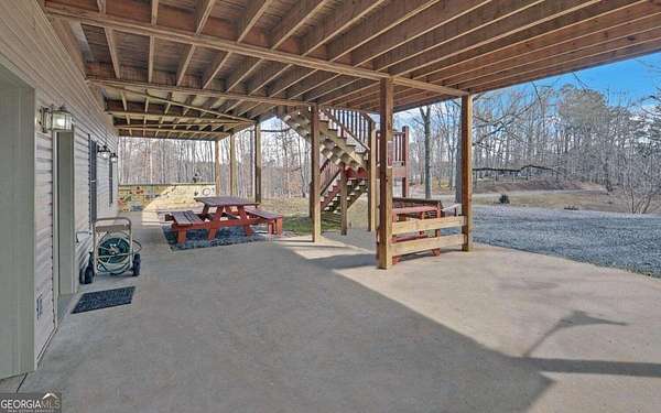 Escape to a home where "peace and quiet" is the standard, not the exception. Tucked away on a sprawling private lot, this property welcomes you with a classic rocking-chair front porch-the perfect spot for your morning coffee and a deep breath of fresh air. Inside, the home opens into a stunning great room anchored by cathedral wood ceilings, creating an atmosphere that is both grand and cozy. The heart of the home is a spacious, thoughtfully designed kitchen with abundant storage, ensuring a clutter-free space for the home chef. The main level features two comfortable bedrooms, including a primary suite complete with a generous walk-in closet. Seamlessly transition from the indoors to your choice of outdoor sanctuaries. Whether you prefer the breeze of the oversized covered screened-in porch or want to soak up the sun on the expansive uncovered deck, this home is built for entertaining. The finished lower level is a versatile powerhouse, offering a den/game room, a third bedroom, a full bath, and an integrated garage. Need more space? Step outside to the private backyard to find a massive open-bay garage, perfect for storing your boat, RV, or car collection. Enjoy total seclusion without sacrificing convenience. This property offers the rare combination of a private estate feel with the infrastructure to support all your hobbies.
