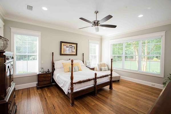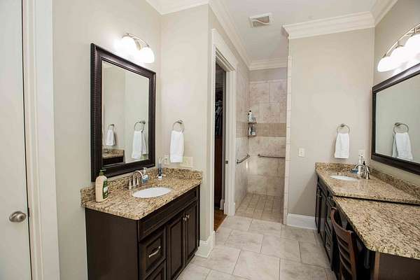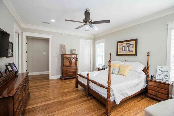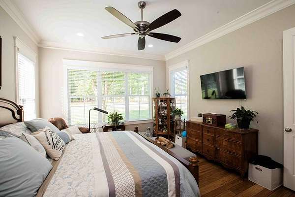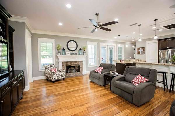 Welcome to your dream home nestled in the heart of Thomasville's esteemed Madison Grove Subdivision! Situated on a sprawling 1.64-acre lot, this remarkable property exudes luxury and comfort at every turn. The main living area has 10 foot ceilings and 8 foot doors, solid bamboo flooring throughout, a spacious great room, boasting a cozy fireplace and built-in entertainment center, an inviting kitchen and dining area, creating an expansive open-concept living space ideal for both everyday living and entertaining. Work from the comfort of home in the office, complete with stylish built-in cabinetry and granite countertops. The main level master suite offers ample space for relaxation, with a luxurious master bath featuring a standalone tub and a generously sized walk-in shower. An in-law suite also awaits on the main floor, complete with its own private garage and entrance, full kitchen, dining area, living room with fireplace, bedroom, bath, and laundry. All wheelchair accessible. Whether used as an in-law suite, a private retreat for guests or a lucrative Airbnb opportunity, this suite offers endless possibilities. There's an oversized utility room, half bath, and 2 double garages, providing ample storage and convenience. Upstairs you'll discover even more delights, including a bonus room, theater room, three expansive bedrooms, two full baths, and over 1800 square feet of floored attic storage space. Step outside to the huge covered porch, overlooking the meticulously landscaped grounds and a backyard oasis complete with a basketball/pickleball court and fully fenced yard, offering endless opportunities for outdoor enjoyment. The backyard also provides ample space to build a shop for RV or boat storage and with the 600 amp surge protected electrical service you'll have more than enough power. This Madison Grove home strikes the perfect balance between tranquility and convenience. Don't let this rare opportunity slip away. Start living the life you've always dreamed