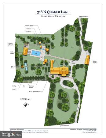 Ideally located in the heart of Alexandria City, Clarens Estate is a one-of-a-kind historic treasure that offers a rare opportunity to own a piece of American legacy. Originally built in 1803, this grand Colonial sits on nearly four acres of exquisitely landscaped grounds with views of the Potomac River. Pre-construction, the land was reputed to have been the site of George Washington's hunting lodge chosen for its commanding views and central location. Over the centuries, Clarens has played a pivotal role in American history-serving as a school, a hospital during the Civil War, and hosting some of the nation's most prominent figures. Lovingly restored and modernized, Clarens is a serene retreat. A Storied Past: Steeped in rich history, Clarens was once the residence of James Murray Mason, a U.S. Senator and grandson of Founding Father George Mason. Mason acquired the estate in 1869, and the home became a gathering place for important historical figures, including Robert E. Lee and Jefferson Davis, who met there in 1870 for their final meeting. The estate also housed the prestigious Fairfax School, attended by notable figures George Washington Custis Lee and George M. Dallas. Later, the estate transitioned into a girls' school and eventually became privately owned. Expansive and Elegant Grounds: Set on nearly four acres, the estate grounds are a private oasis. Mature Tulip Poplars, American Elms, Maples, Apple & Cherry Trees, Hydrangeas, Boxwoods, Tea Roses, and Antique Peonies (some transplanted from Dumbarton Oaks) surround the home and add to the magical atmosphere. An irrigation system helps maintain the lush landscaping. Historic brick walls and winding stone paths evoke the elegance of a bygone era. A picturesque pond with a brick footbridge, a loggia, and a palazzo contribute to the estate's European feel. Four charming outbuildings-a one-bedroom carriage house with a wood-burning fireplace, a potting shed, an ice house, & a well house-all carefully preserved add utility and charm. The modern two story pool house, designed to blend in with the historic buildings, is the jewel of the property. Resort-Style Pool & Guesthouse: The heated 24'x44' pool includes a retractable cover, Jacuzzi, fire pit, and sandstone decking. A trellised BBQ area with a Wolf grill and granite countertops makes entertaining a delight. The pool house features a cozy living room with a fireplace, full kitchen and bath, and a spacious upstairs bedroom with estate views. Historic beams and wood flooring add charm, while French doors and natural light offer comfort and style. The Historic Main Residence: Spanning over 10,000 square feet, the main residence offers 7 bedrooms and 5.5 bathrooms, combining historical details with luxury living. Original hardwood floors, nine fireplaces, keystone arches, and elegant crown molding pay homage to the home's heritage. Enter through a black-and-white marble porch with a Haint's blue ceiling into a dramatic foyer flanked by a cozy library and a formal living room. The dining room is anchored by a Crystal Finials chandelier and hand-painted mural wallpaper. The French country kitchen features a La Cornue range, granite countertops, two farmhouse sinks, and top-tier appliances. A sunny family room opens via French doors onto the grounds, offering seamless indoor-outdoor living. The primary suite includes an 1806 Irish mantle, walk-in closets, and a luxurious bath with heated floors, a soaking tub, and a steam shower. Additional bedrooms provide ample space for family or guests, while the top-floor suite serves as a peaceful retreat or playroom. Located just 5 minutes from Old Town Alexandria and 15 minutes from Washington, D.C., Clarens offers both tranquility and urban accessibility. Though only moments away from premier dining, shopping, and cultural attractions, the estate remains a private sanctuary, untouched by the bustle of the city. See VAAX2045682 for development opportunity