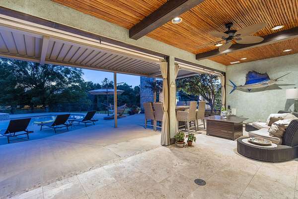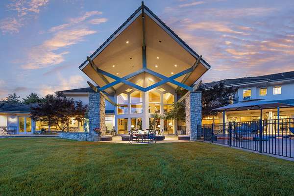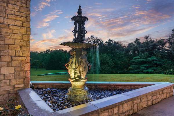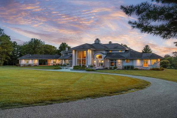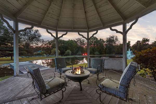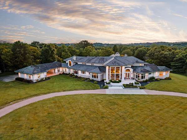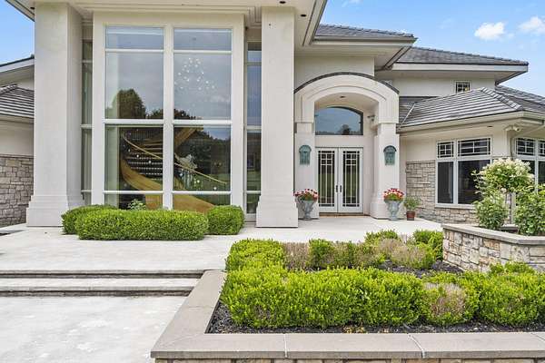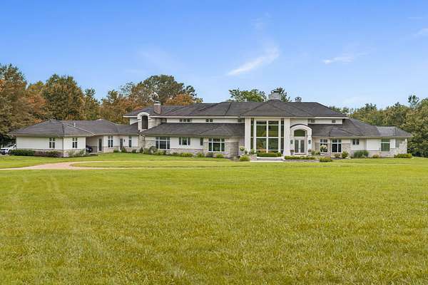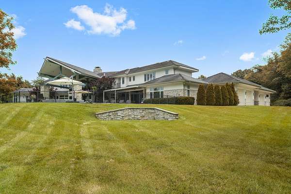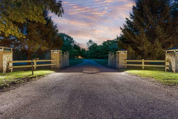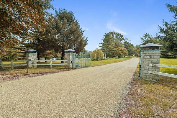 Classic elegance meets modern luxury on nearly 10 gated acres in one of Springfield's most coveted locations. Designed for those who demand excellence in every detail, this 7,405 SF estate offers an unmatched blend of sophistication, privacy, and resort-style amenities. The estate features 5 generously appointed bedrooms, each with its own private en-suite, along with 6.5 lavish bathrooms. Impeccable craftsmanship is on full display with 8-foot solid doors, travertine tile flooring, commercial-grade synthetic stucco and stone exterior, and 2x6 construction throughout. Step inside to a dramatic grand foyer with a sweeping staircase and a wall of windows that bathes the home in natural light. The formal living room boasts a see-through fireplace, one of five gas fireplaces found throughout the home. Entertain with ease in the open-concept main floor featuring a chef's kitchen with stainless appliances, abundant cabinetry, a butler's pantry, and bar seating. A hearth room, formal dining area, and sliding door access to the outdoor living space create seamless flow. The primary suite is a sanctuary of its own, featuring a fireplace, wet bar, spa-inspired bath with jetted tub, walk-in tiled shower, dual vanities, and a large walk-in closet. Additional main floor highlights include a private guest suite, home office/study with custom built-ins, laundry room, pool-access full bath, and a dedicated fitness room. Upstairs, find three additional bedrooms, all with en-suite baths, and a second living area with wet bar, ideal for hosting or multigenerational living. Outdoor living reaches new heights with a covered patio and gazebo overlooking a private, well-fed, stocked pond with fountain. The 20x40' gunite saltwater pool and saltwater hot tub, under warranty until 2031, provide a resort-style escape just steps from your door. An irrigation system sourced from the private well and electric fencing ensure both beauty and function across the grounds.