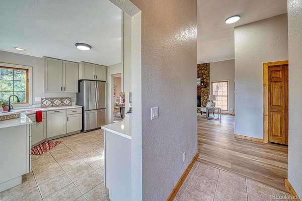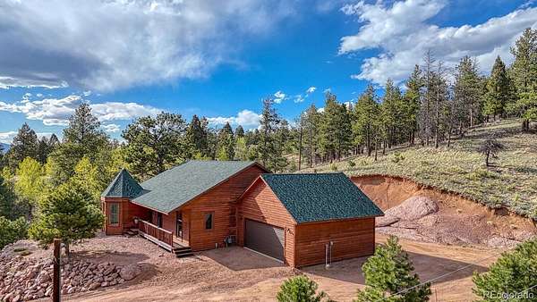 Enjoy peace, privacy, and fresh mountain air from this newly remodeled home nestled among the trees and rock outcroppings of Colorado Mountain Estates. Just 9 minutes from Florissant, with easy access to Woodland Park, Colorado Springs, and beyond. Inside, you'll find a spacious living room with a cozy stone fireplace, a formal dining area, and a completely updated kitchen. Upgrades include new carpet and laminate flooring, fresh paint, modern light fixtures, a newly stained deck, a brand new water heater, and so much more. The large primary suite features a 5-piece bath and walk-in closet. You'll also appreciate the dedicated laundry room just off the oversized 2-car garage--perfect for extra storage and all your mountain toys. The kitchen offers distant mountain views, stainless steel appliances including a gas range, quartz counters, and custom cabinetry, plus a bonus breakfast nook or sitting area to start your day. Check this one out today!