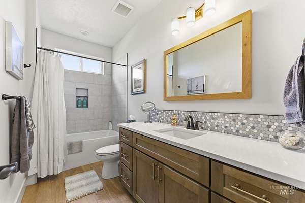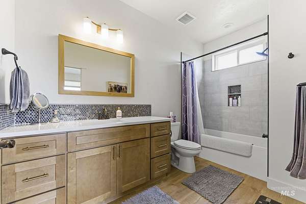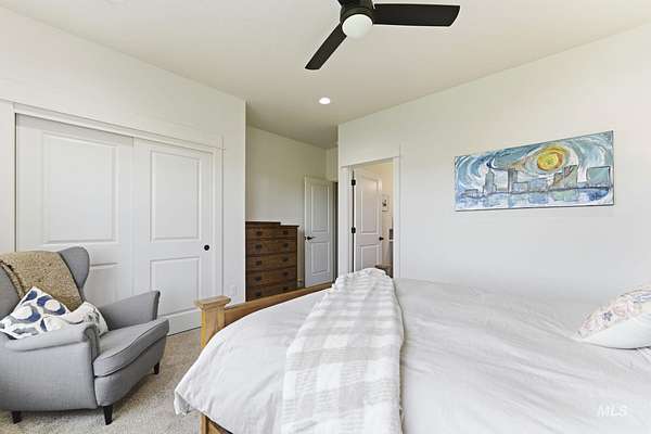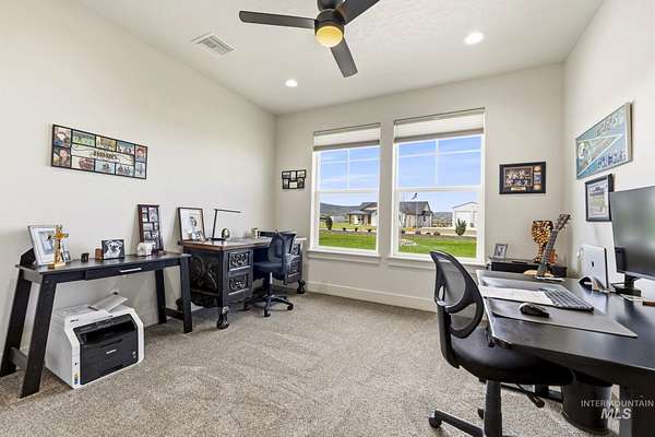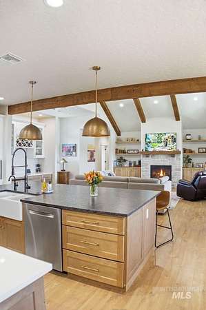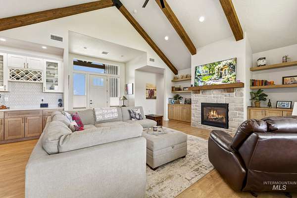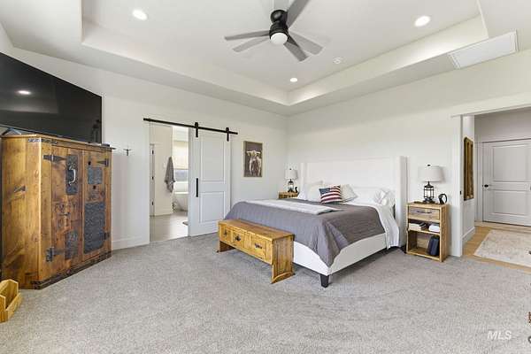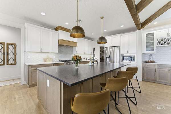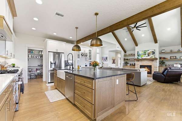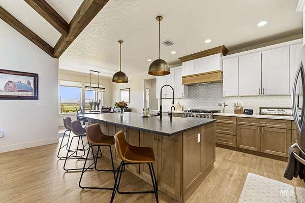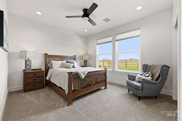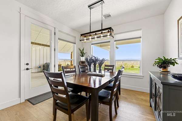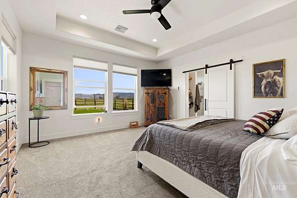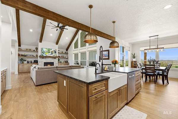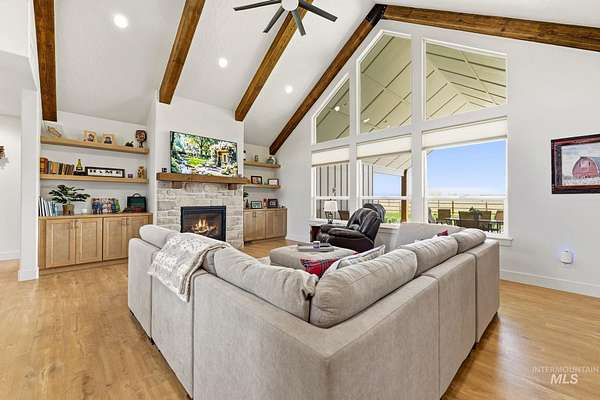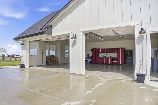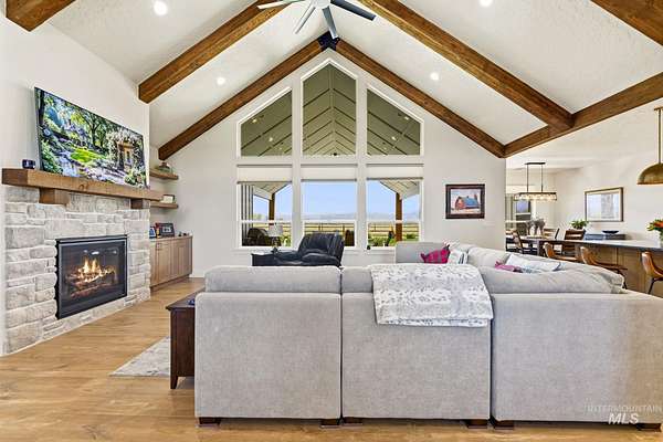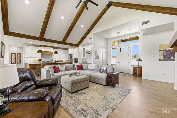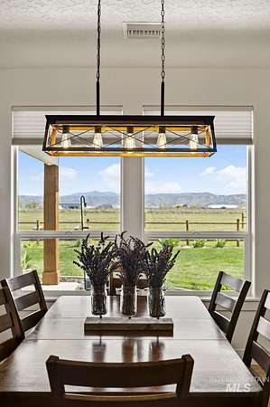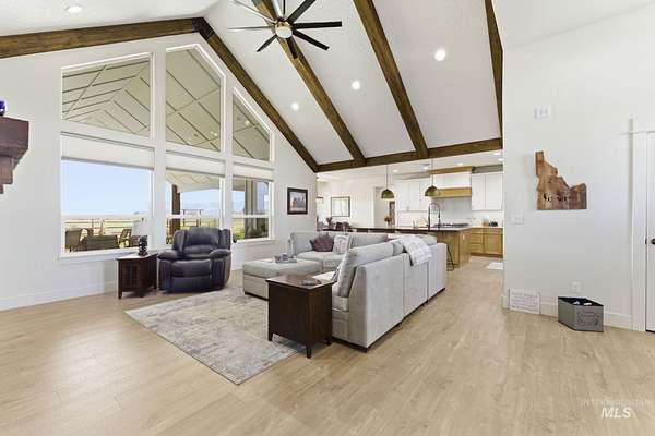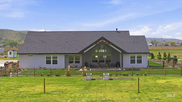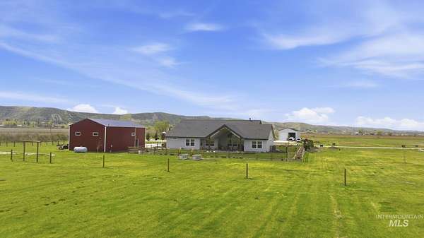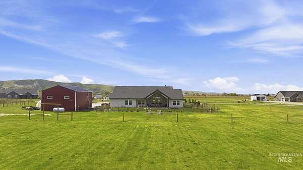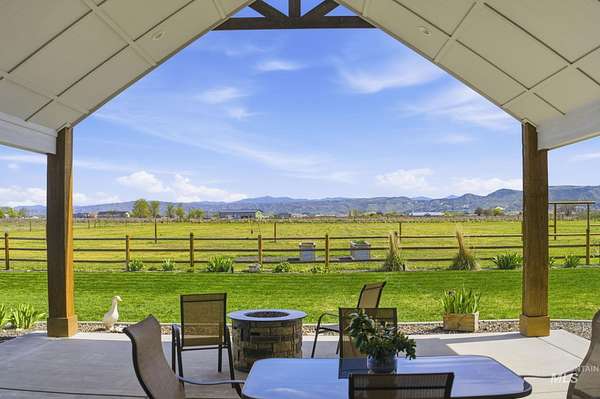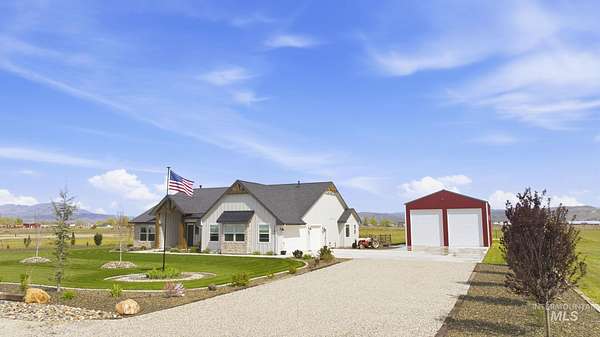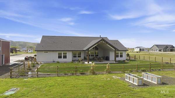 Set on 5 pristine acres with breathtaking unobstructed views of Bogus Basin, South Slope and the surrounding Buttes, this custom-built modern farmhouse is the perfect blend of elevated design and Idaho living at its finest. From the moment you step inside, you're welcomed by soaring vaulted ceilings, striking wood beams, and an abundance of natural light that creates a warm yet refined atmosphere. The open-concept layout is ideal for both everyday living and entertaining, anchored by a stunning chef's kitchen featuring leathered granite countertops, huge pantry, upscale finishes, generous prep space The luxurious primary suite offers a true retreat, complete with a spa-inspired bathroom and heated floors-bringing comfort and sophistication to your daily routine Outside, the lifestyle truly shines. Relax or entertain on the extended covered patio while taking views and peaceful surroundings. Watch the duck, geese, pheasant and sandhill cranes. you may even see mule deer crossing. For those needing room for toys, hobbies, or business use, the 3 car epoxied garage and the impressive 30x50 shop with its own bathroom and two 14' RV doors is a rare feature-offering flexibility and function without compromise. NO HOA'S This is more than a home, it's a lifestyle property where craftsmanship, comfort, and open space come together in one exceptional offering. PLS DRIVE SLOW ON GRANDVIEW LANE