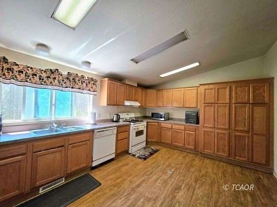 Tucked away on over 6 peaceful acres that back up to National Forest, this well-designed 3 bedroom, 2 bath home offers space, privacy, and a connection to nature. Inside, you'll find a large living room that flows seamlessly into the dining area and a spacious kitchen-perfect for entertaining or quiet nights at home. The primary suite is a true retreat with a walk-in closet, dual sinks, a garden tub, and a separate walk-in shower. The two additional bedrooms and second bath are located on the opposite end of the home, offering a functional split floor plan. A dedicated utility room includes a washer, dryer, sink, and extra storage. Step outside to enjoy a large garden area, handy storage building, and open land with room to breathe. With well water, septic, city power, and direct access to miles of forest, this property is ideal for those seeking a country lifestyle without sacrificing comfort.