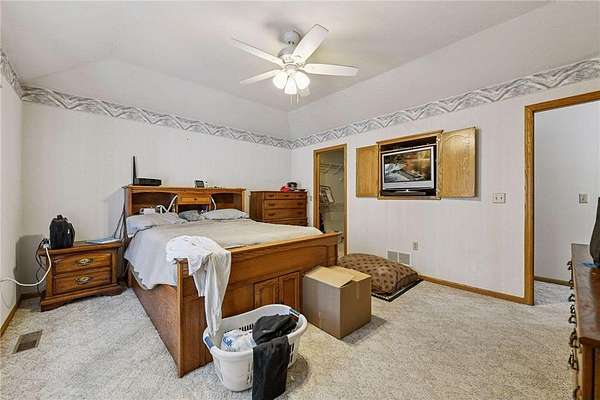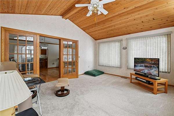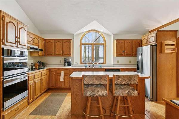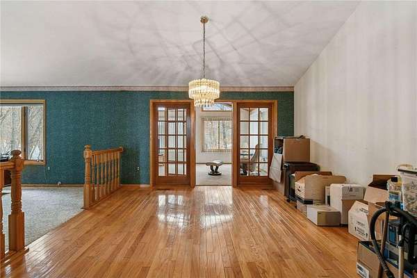 Est $3,866/moPrivate retreat tucked back in the woods. Oversized 3 car garage with workshop. Main floor primary suite, main floor laundry, four season porch. Home needs some updating. Big Satellite Dish in back yard stays with the property. Seller relocating.