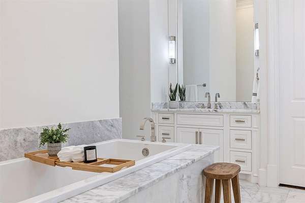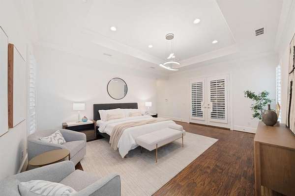 The main residence features 5 bedrooms and 6 bathrooms, thoughtfully designed for both grandeur and comfort. Expansive living spaces showcase rich wood floors, hand-troweled walls, marble countertops, and elegant designer fixtures throughout. The luxurious primary suite is a true retreat, highlighted by exquisite marble finishes and a dramatic, spa-inspired shower.