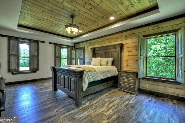 Welcome to your dream retreat tucked into the scenic Blue Ridge countryside. This three-bedroom, four-and-a-half-bath modern farmhouse blends luxury with rustic charm, offering a spacious layout suited for everyday comfort and upscale entertaining alike. Inside, warm wood flooring complements bright, airy walls, while sky-high ceilings and expansive windows flood the great room with natural light. A massive fireplace creates the ultimate gathering spot, and the chef's kitchen features custom cabinetry, a supersized island, and premium appliances that opens to oversize dining area.??Upstairs, a large loft adds flexibility to the living space-great for a second living area, office, or game room. Each bathroom boasts a spa-inspired design, complete with tiled shower in master and granite counters. The expansive primary bedroom is a true retreat, and the attached en-suite feels like a luxury day spa.??Step outside to find a private, level yard accented by lush landscaping and a perfectly positioned fire pit for starlit conversations. The covered rocking chair porch overlooks a picturesque mountain backdrop, along with a stunning pool and entertainment area that's sure to impress guests year-round. A 2+ car garage offers ample storage, and the bonus suite above is perfect for guests or a private studio space.?? Located just minutes from local parks, markets, and schools, this property sits on a scenic, paved country road and offers the peace of nature with convenient access to nearby amenities. With craftsmanship and character at every turn, this home isn't just a place to live-it's a lifestyle.