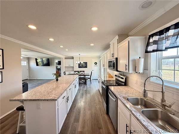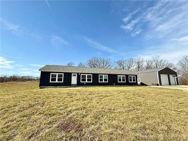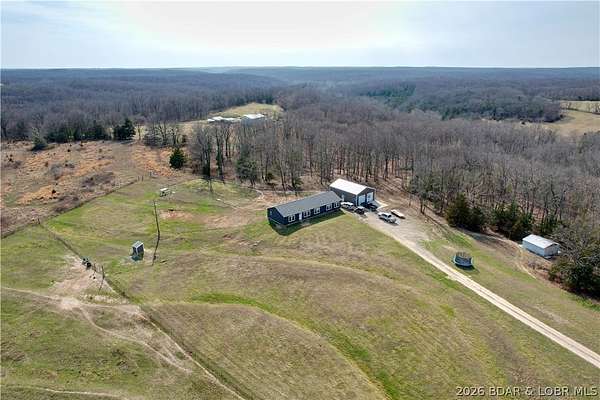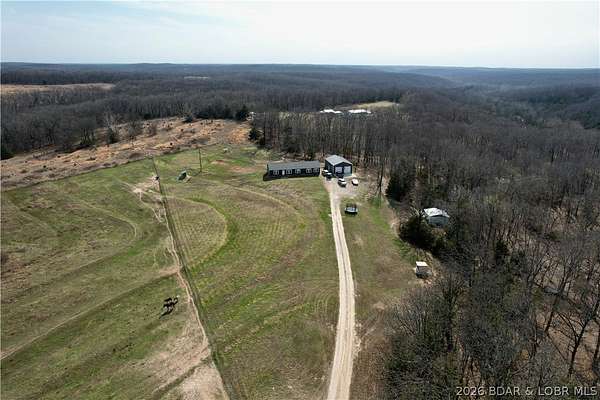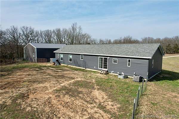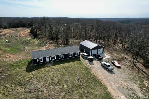 Family homestead, hunting property, and peaceful country retreat all in one. Built in 2023, this 4-bedroom, 3-bath home offers the benefit of newer construction with newer appliances, HVAC, and roof, plus a spacious one-level layout designed for everyday living. Inside, you'll find an open concept floor plan filled with natural light, a large kitchen with dining bar, coffee bar, adjoining dining room, and two separate living spaces to give everyone room to spread out. The primary suite features a large walk-in shower and double sinks, while the Jack-and-Jill bath between the spare bedrooms is ideal for family convenience. Step outside to 60 acres of privacy with trails, pasture, partly wooded ground, cross fencing, and abundant deer and turkey for outstanding hunting potential. The land was thoughtfully logged with a forester to improve wildlife habitat, with mature trees still remaining. A 1,230 sq. ft. shop, chicken coop, and additional animal storage buildings add versatility for livestock, hobbies, storage, or recreation. All of this in a private setting close to the Big Buffalo Conservation and town for shopping and restaurants.