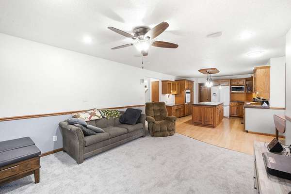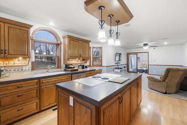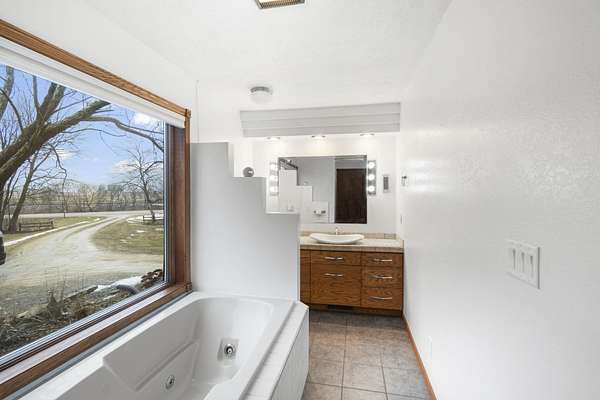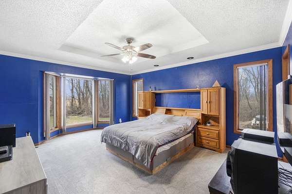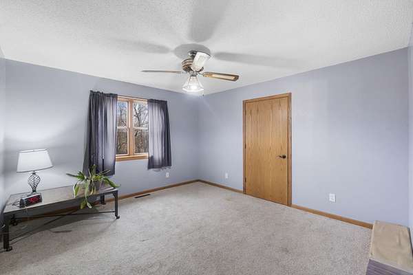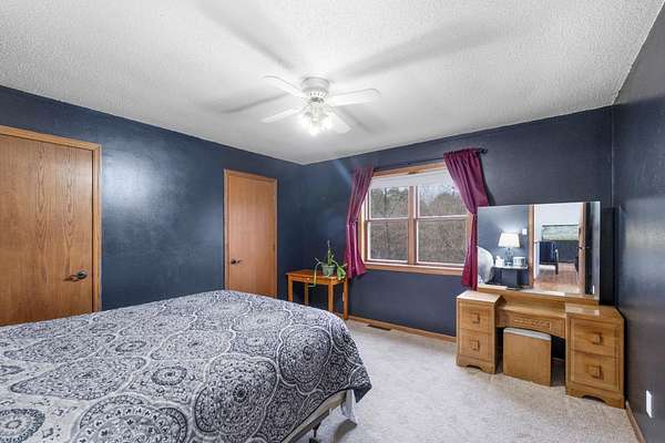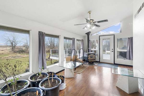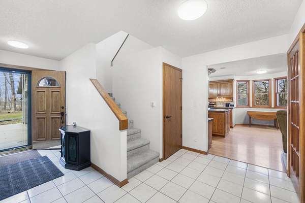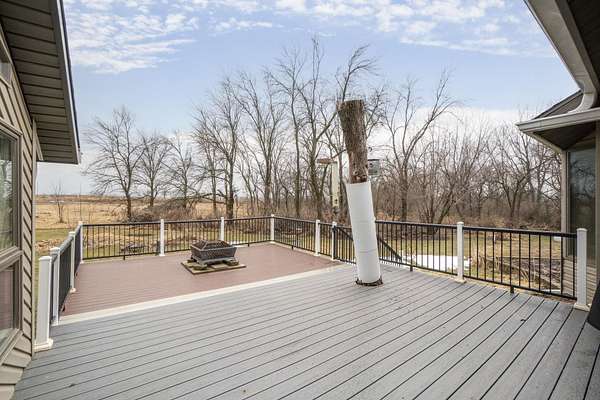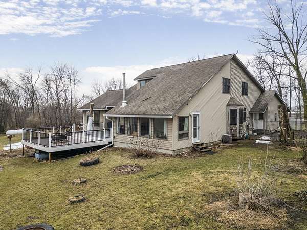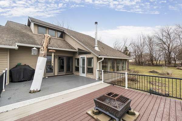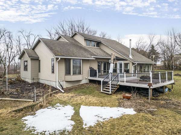 Nestled on the outskirts of Lawler, this wooded property offers beautiful views and over 3,000 sq. ft. of living space. The kitchen features custom cabinets, built-ins, a breakfast nook, and great storage. The family room opens to a bright four seasons room with wraparound windows overlooking the backyard and deck. The main floor includes a spacious primary suite with whirlpool tub and walk-in closet, plus an office that could serve as a bedroom or nursery. Attached 2-stall garage leads to a mudroom, laundry, and 3/4 bath. Upstairs you will find two large bedrooms with walk-in closets, a built-in study area, and a full bath. The unfinished basement provides excellent potential for additional living or recreational space. A beautiful setting with plenty of room to make it your own!