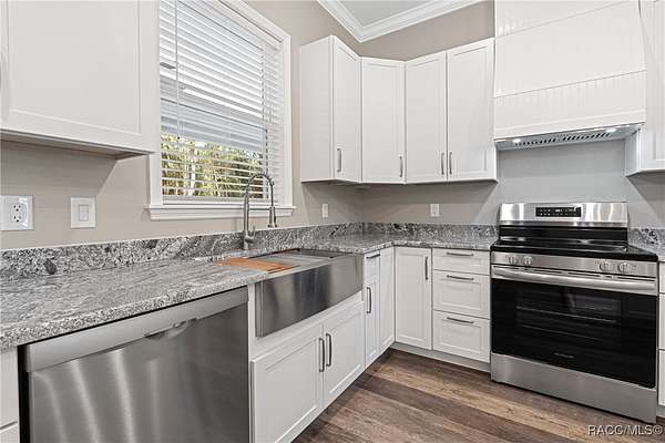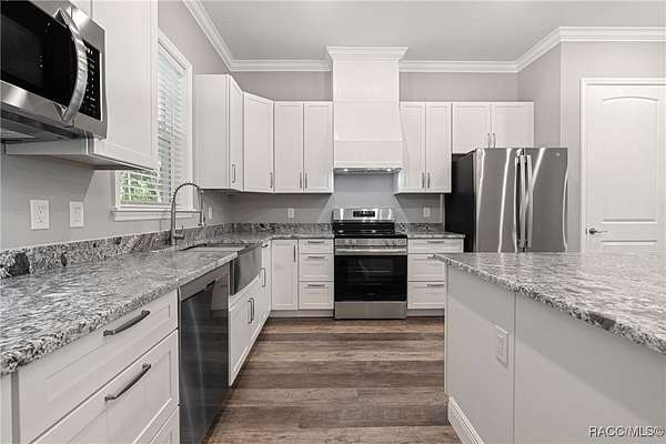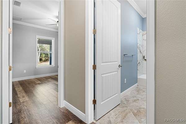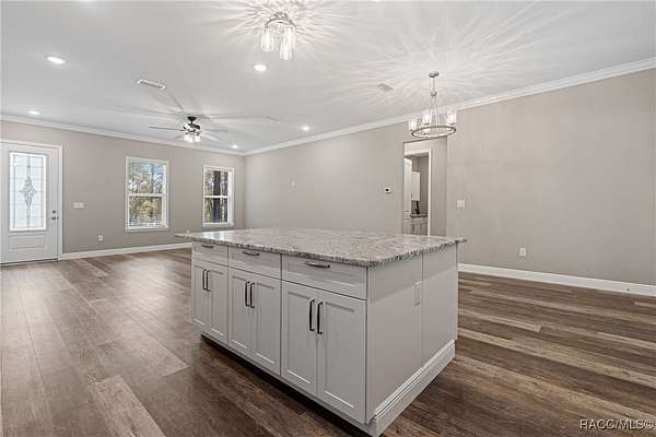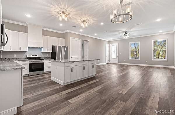 Welcome to this one-of-a-kind luxury new construction home, built in 2026, where modern design meets serene Florida living. Offering 3 bedrooms, 2 bathrooms, and an oversized 2-car garage, this expansive residence features 3,097 square feet under roof and sits on a breathtaking 2.35-acre homesite shaded by majestic live oak trees. Designed with entertaining and everyday comfort in mind, the open-concept floor plan is enhanced by 10-foot ceilings, 8-foot doors, and a spacious living area ideal for gatherings. Luxury LifeProof(R) vinyl plank flooring flows throughout the home, complemented by tile flooring in all bathrooms for both style and durability. At the heart of the home is a custom chef's kitchen, showcasing granite countertops, a large center island, stainless steel appliances, a Bosch dishwasher, stainless steel farmhouse sink, and a powerful 600 CFM range hood. Abundant cabinetry, expansive counter space, and stainless steel pantry shelving provide exceptional functionality for creating memorable meals.The primary suite is truly massive, offering a private retreat with a generous walk-in shower and an impressive 8.2 x 9.6 walk-in closet, ensuring no shortage of space. Ceiling fans throughout the home add comfort and efficiency. This super energy-efficient green home features spray foam insulation, an air-conditioned attic with storage, and a metal roof with a 40-year warranty, delivering long-term value and peace of mind. Additional highlights include a Genie wall-mounted garage door opener, an oversized garage measuring 24.6 x 24.4 feet, and French doors with integrated blinds that open to tranquil views of nature. Tucked away on a dead-end road with minimal traffic, this property offers privacy while remaining close to conveniences-Lowe's and Walmart are just one mile away. Enjoy easy access to State Road 589 (12 minutes) and I-75 (28 minutes), placing Tampa within a 90-minute drive. Embrace the best of Florida's lifestyle with nearby opportunities to swim with the manatees, boat on the Gulf, and enjoy countless local attractions. Enjoy a true slice of paradise-where luxury, space, nature, and modern efficiency come together. This exceptional custom-built home is a rare opportunity you won't want to miss.