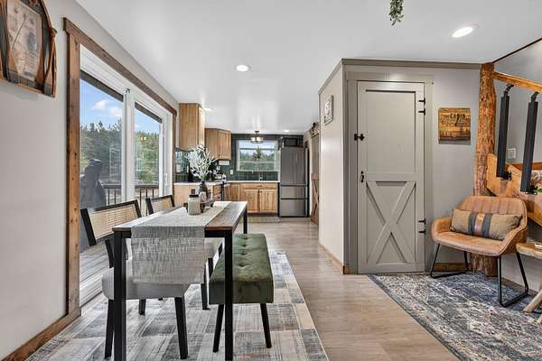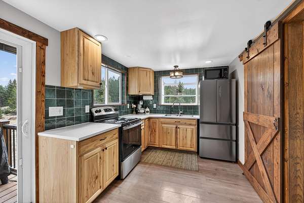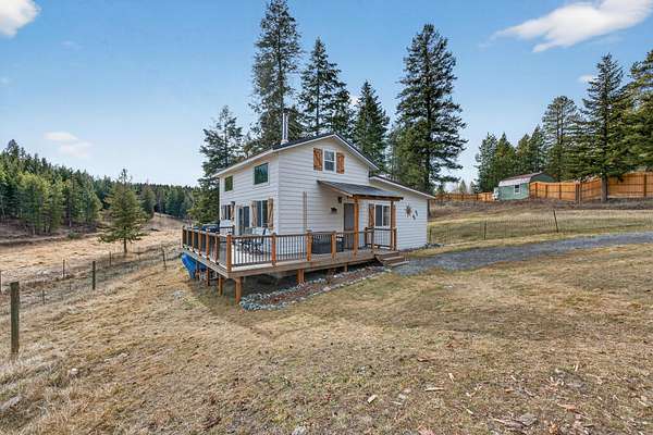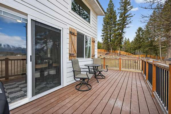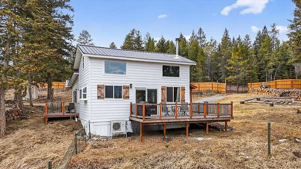 If you've been dreaming of a quieter pace surrounded by wide-open skies and mountain views, this beautifully remodeled 2-bedroom home on 1.6 acres offers the perfect retreat. Set among rolling meadows and fully fenced for privacy, this property feels tucked away from the world while still enjoying easy access from a fully-maintained county road. A gently winding creek flows through the meadow below, providing a soothing natural soundtrack as you relax on the low-maintenance Trex deck and take in the stunning mountain backdrop. Inside, the home has been thoughtfully designed with brand-new appliances, flooring and a mini-split system for efficient comfort. A cozy wood stove adds warmth and charm for Montana winters. Large windows and vaulted ceilings fill the living space with natural light, while black wrought iron finishes and custom woodwork create a refined yet welcoming feel. The spacious main-floor bedroom features its own private deck - the perfect spot for morning coffee with uninterrupted views of the mountains and creek. Outside, you'll find rolling lawn areas, pasture space, an oversized shed for storage and room for gardening or a small homestead setup. Located just minutes from area lakes and thousands of acres of public land, you'll have endless access to hiking, fishing, boating and exploring, while coming home to your own peaceful sanctuary.