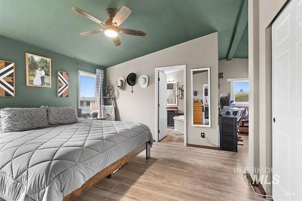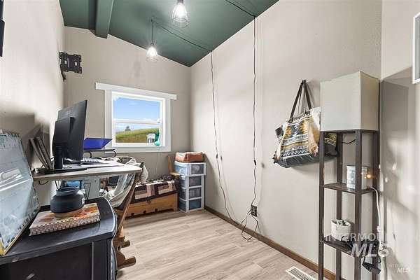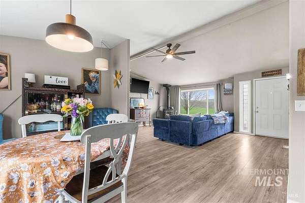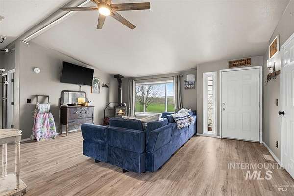 Nestled amidst the serene beauty of nature, this charming single-family home is a sanctuary for those seeking both comfort and a connection to the great outdoors. With 3 inviting bedrooms and 2 bathrooms, including a luxurious master suite complete with a private office space, this home is perfect for unwinding and staying productive. The spacious kitchen allows plenty of room for family baking days, while the open living room offers striking views as far as the eye can see. With 5 fully fenced acres and a 46x48 barn, there is room for all your horses! Spend your days gardening or simply soaking up the breathtaking sunsets in this peaceful haven, just 15 minutes from town. Whether you're an equine enthusiast or simply adore country living, this property offers a perfect blend of tranquility and convenience. Home and well inspection reports are available!