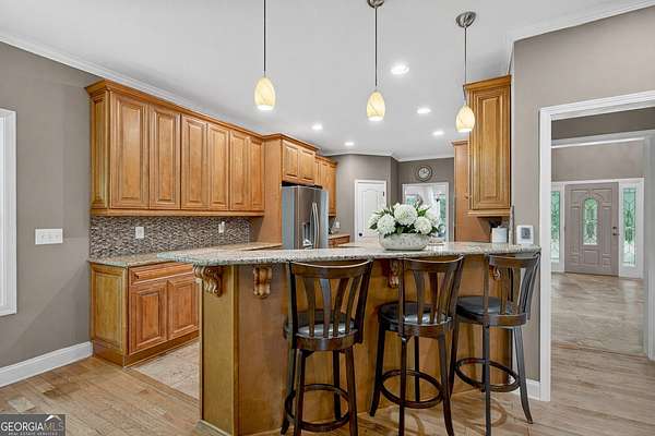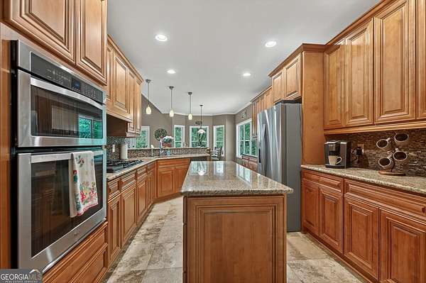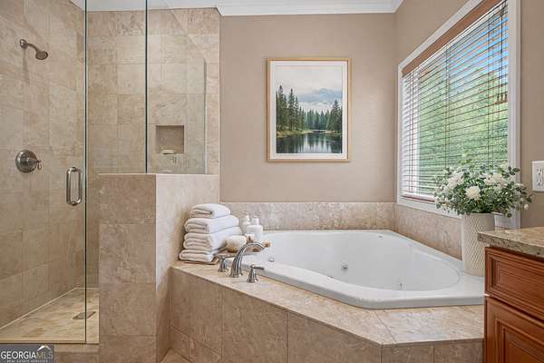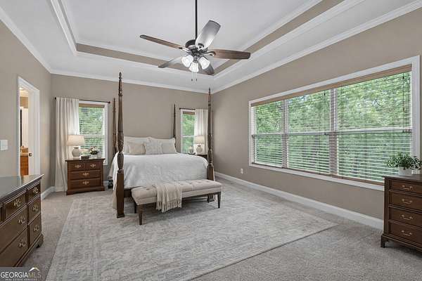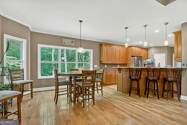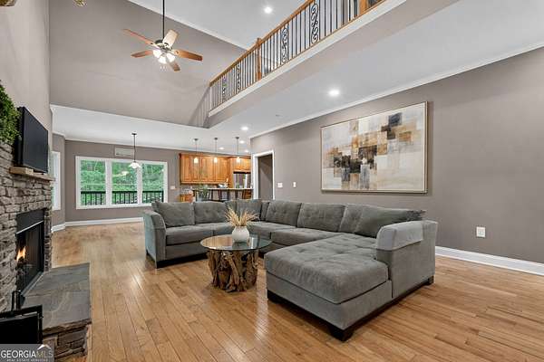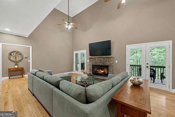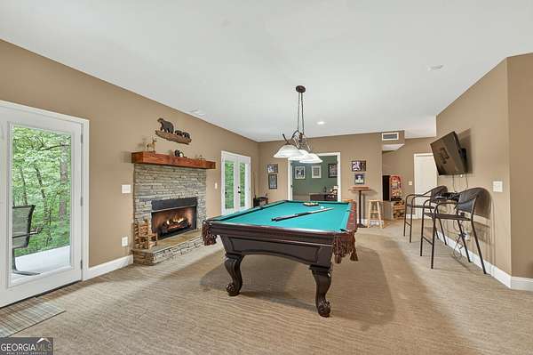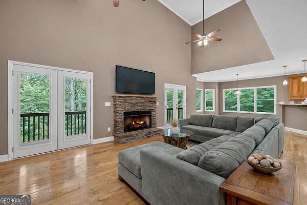 THIS CUSTOM-BUILT 2016 MASTERPIECE in the prestigious gated community of GEORGIAN HIGHLANDS offers 5,560 SQ. FT. of refined living space sitting on 3.51 serene & beautiful acres. This 4 bedroom, 3.5 bath home offers a SPACIOUS LAYOUT, BEAUTIFUL WOODED MOUNTAIN VIEWS, & ENDLESS ENTERTAINING OPTIONS. Step into timeless elegance w/ a GRAND TWO-STORY FOYER showcasing stone flooring, flanked by a versatile room ideal for an office, fifth bedroom, or formal living space, & a FORMAL DINING ROOM w/ hardwood floors, bay window, & seating for twelve. The CHEF'S KITCHEN features GRANITE COUNTERS, tile backsplash, custom cabinetry, stainless appliances, gas stove w/ grill, & a large island flowing seamlessly into the breakfast area & SPACIOUS LIVING ROOM w/ CATHEDRAL CEILING, hardwoods, & a REAL STONE WOOD-BURNING FIREPLACE, all opening to a COVERED BACK PORCH to enjoy this beautiful wooded property w/ seasonal mountain views. The MAIN LEVEL PRIMARY SUITE offers a PRIVATE DECK, SPA-LIKE BATH w/ dual vanities, granite counters, jacuzzi tub, walk-in shower, & expansive walk-in closet. Additional main-level highlights include a guest bath, laundry w/ custom cabinetry & granite, & an ATTACHED 2-CAR GARAGE. Upstairs provides a cozy loft/office plus two additional bedrooms, while the FULLY FINISHED BASEMENT is an ENTERTAINER'S DREAM w/ a GAME ROOM, CUSTOM MOVIE THEATER w/ projector & surround sound, a SECOND WOOD-BURNING FIREPLACE, large bedroom, guest bath w/ tile shower, & a study w/ mountain views, all opening to a COVERED PATIO. W/ LOW-MAINTENANCE HARDIE SIDING & a WHOLE-HOUSE GENERATOR, this home combines BEAUTY, DURABILITY, & MODERN CONVENIENCE-all minutes from REECE CIDER, REECE APPLE HOUSE, & FAINTING GOAT VINEYARD. Come discover the exceptional value this dream home offers & experience nature, peace & serenity the North Georgia Mountains is known for.