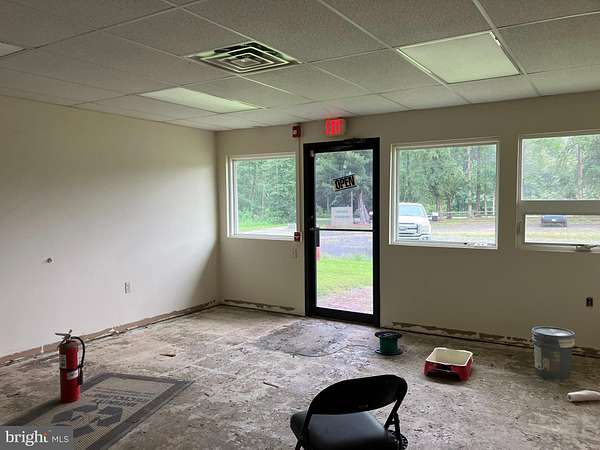 17,000+/- SF building on 5 acres for lease on Rt. 301 and Millington Rd. The property has 486 ft of frontage on Rt. 301. The property is zoned Mixed Use Development. The building has approximately 2800 SF of office area, plus 14,476 SF of storage and warehouse space. The office area is conditioned with heat and AC. Floor tiles in the office area were recently removed; concrete sub-floor remains. The office walls were recently painted. The warehouse space has ceiling mounted propane forced air heaters and concrete floor. There are 8, 16 ft overhead doors in the warehouse areas. This is a highly visible location for your business.