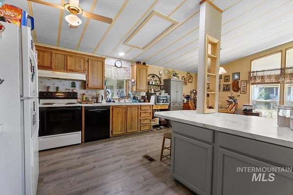 Est $2,444/moEveryone needs there own little slice of Heaven! Here is yours. 4+irrigated acres with a home, detached garage, shop, corrals and fully fenced perimeter. What more do you need? Home has new LVP in the kitchen, baths and laundry, low maintenance metal roof and vinyl siding and a huge screened in back porch. Many little outbuildings for your livestock and a fenced yard for your dogs.