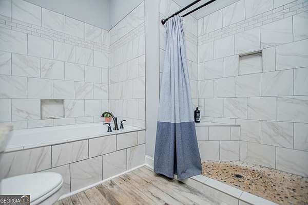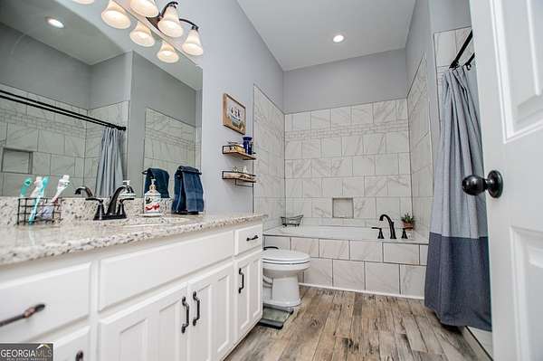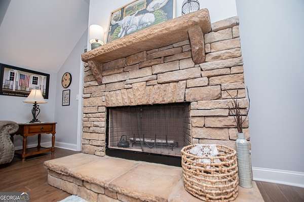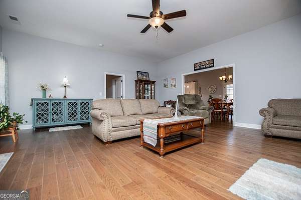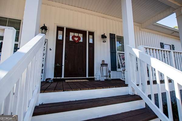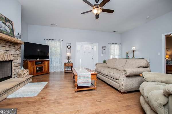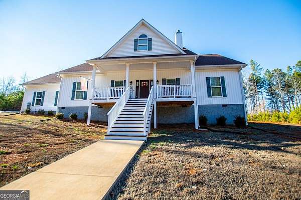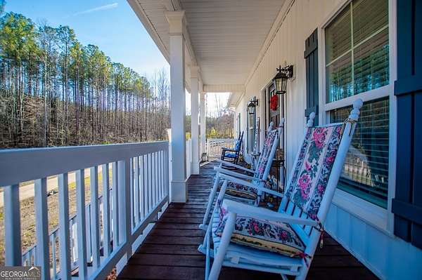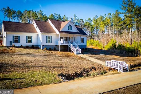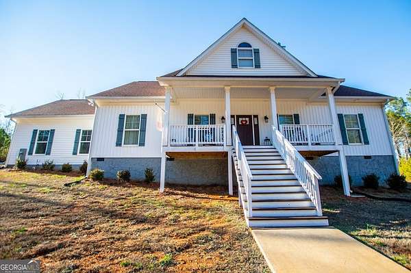 Nestled on 9 peaceful acres in Heflin, Alabama, this beautiful home offers the perfect blend of privacy, space, and timeless charm. A welcoming rocking chair front porch sets the tone as you step inside to hardwood floors and an inviting living room anchored by a stunning fireplace, ideal for cozy evenings at home. The thoughtfully designed kitchen is a standout, featuring granite countertops, a tile backsplash, Chicago-style brick tile flooring, a farmhouse sink, stainless steel appliances, and a convenient breakfast bar perfect for casual dining or entertaining. The main level boasts 10-foot ceilings and a spacious layout with three bedrooms and two bathrooms, including a private primary suite with a walk-in closet, tile shower, and a separate 6-foot jetted tub for ultimate relaxation. Upstairs, you'll find two additional bedrooms, a full bathroom, and a bonus living area, all with 8-foot ceilings, offering flexibility for a media room, playroom, or second family space. Outside, enjoy the peace and privacy of a gated entrance with a paved driveway, along with the convenience of a two-car garage. This property delivers country living at its finest and is an exceptional place to call home.
