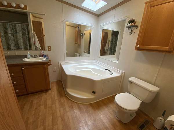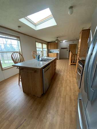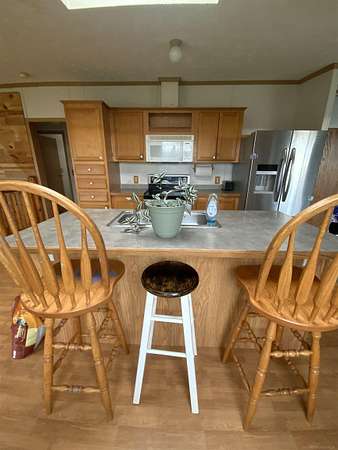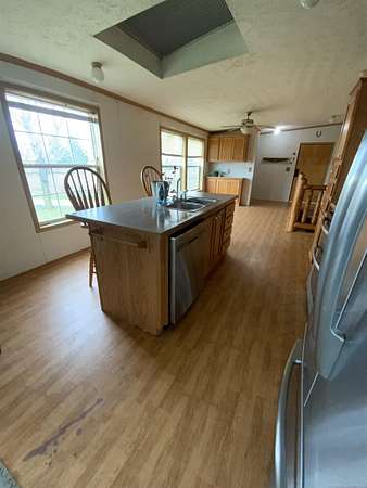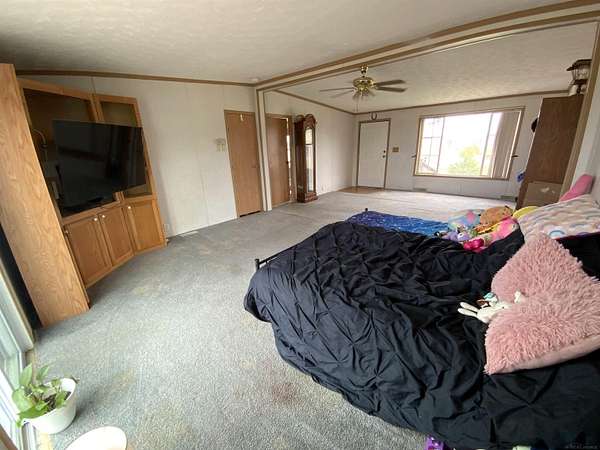 Est $1,715/mo2003 Manufactured home sitting on the back of 6 acres. Affidavit of Affixture has been filed. So many updates to talk about. All appliances included as well as back-up generator, security system (8 cameras) electric retractable awning, and 10 gun safe. Outside there is water to the 30 x 40 pole barn as well as the garden. Pole barn has garage doors on both ends. New gravel in the driveway. Many fruit and pine trees. Trails throughout property. Trex deck on front and back porches. Covered porch. Steel roof. Propane furnace and pellet stove furnace provide heat for home. Central Air. Home currently has Highline internet.