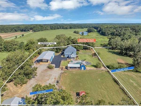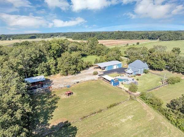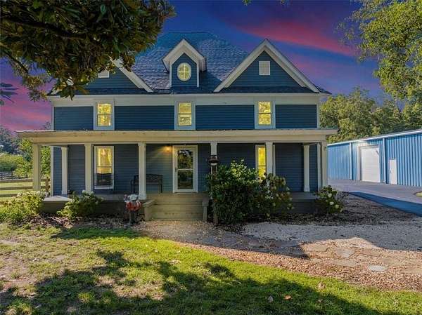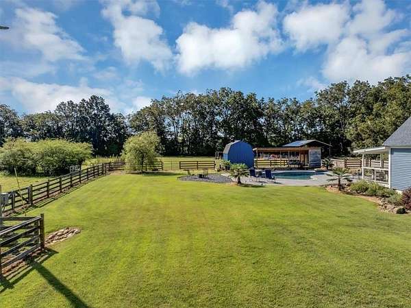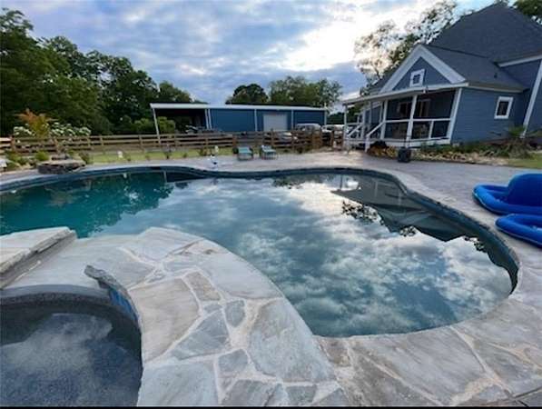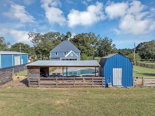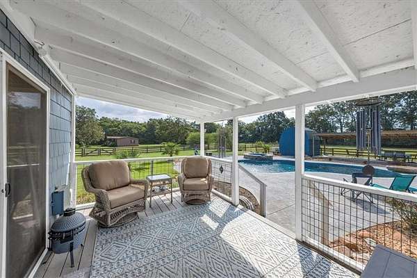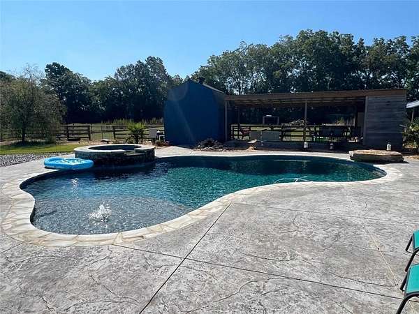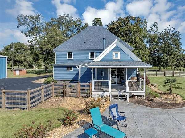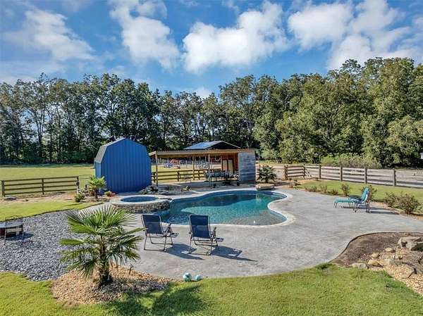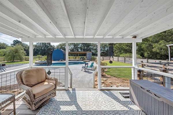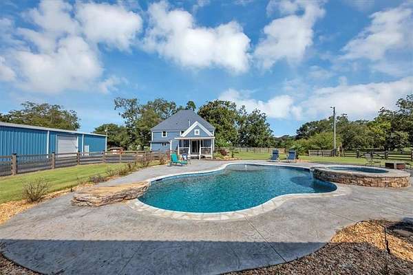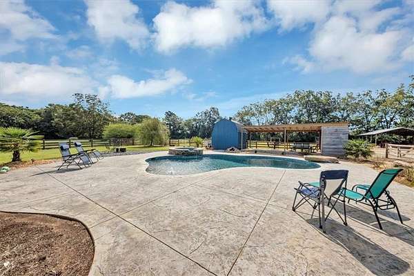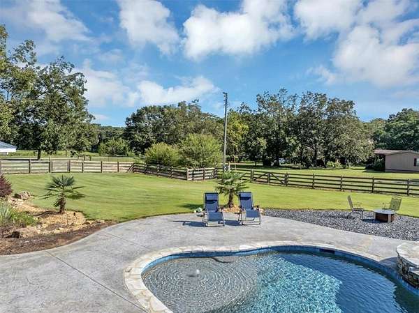 Step into a perfect blend of historic charm and modern luxury with this beautifully renovated two-story 4-bedroom, 3-bathroom farmhouse, originally built in 1910 and thoughtfully updated from top to bottom. Nestled on 1.93 acres, backyard fully fenced, this property offers an exceptional lifestyle with a stunning new Pebble-tec in-ground saltwater pool and hot tub, multiple large barns, and scenic views!