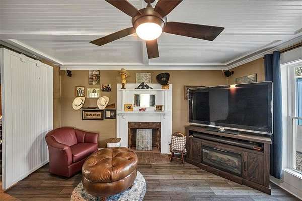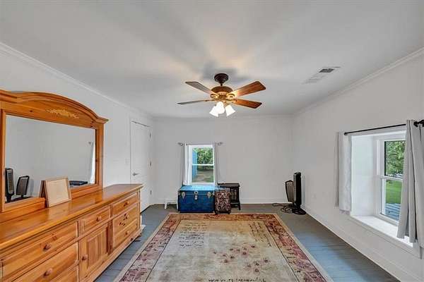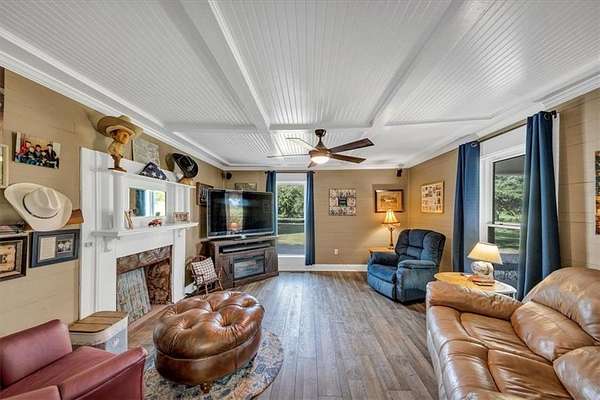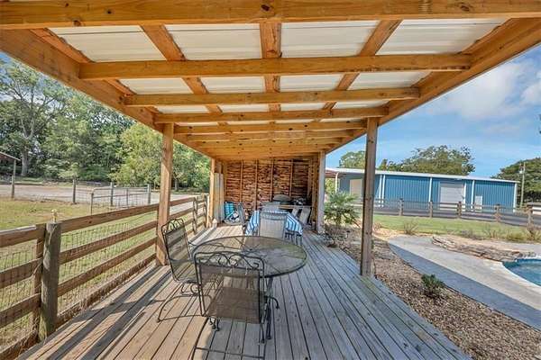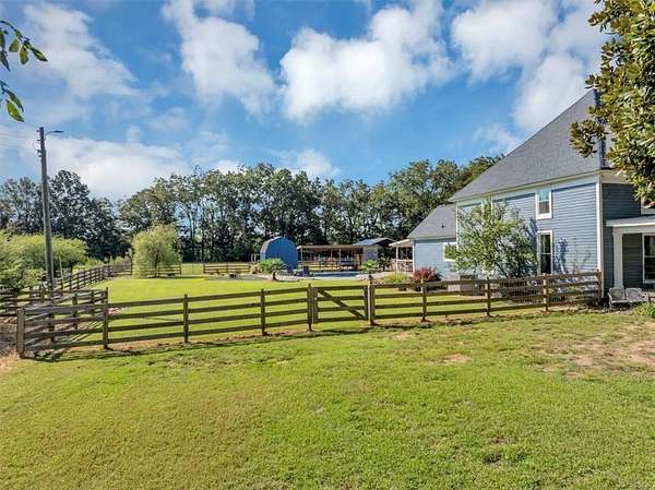 Enjoy the beauty of nature with mature pecan trees, a 100-year-old magnolia tree in the front yard, professionally pruned, and a peaceful fenced pasture for animals. A private road leads you in, offering serene sunset views over neighboring pastures from your front porch.