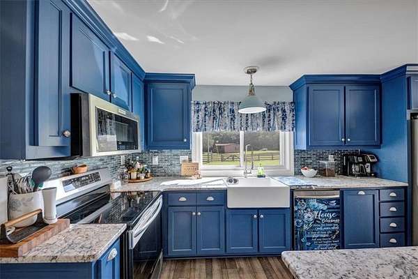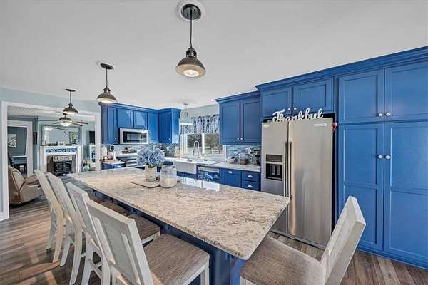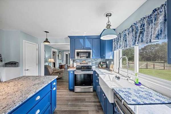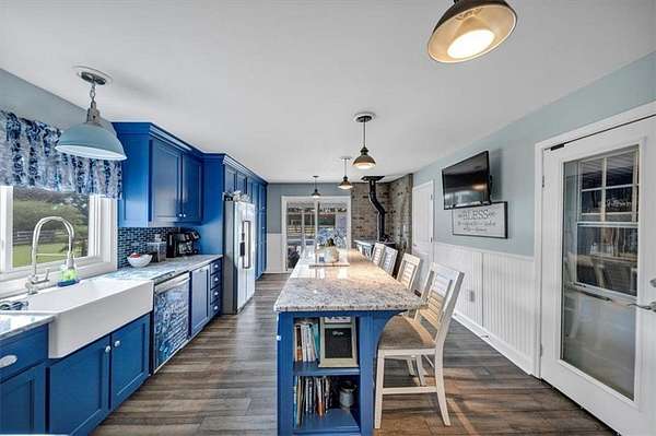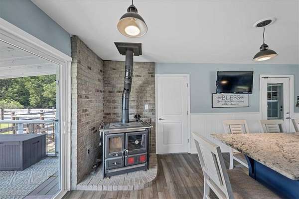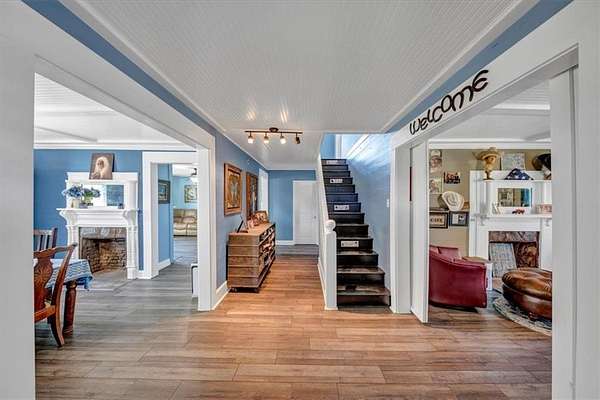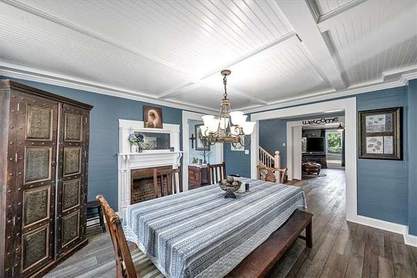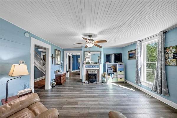 Inside, you'll find a spacious and bright layout with new windows, blown-in insulation, and a new heat pump for the downstairs level. The kitchen is a chef's dream with all new custom cabinetry, stainless steel appliances including an induction oven/range, and a charming new wood-burning cooking stove as a standout feature. One of the upstairs bedrooms retains its original flooring, preserved in excellent condition to maintain the home's historic character while the remainder of the home has luxury vinyl throughout.