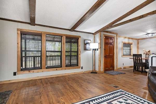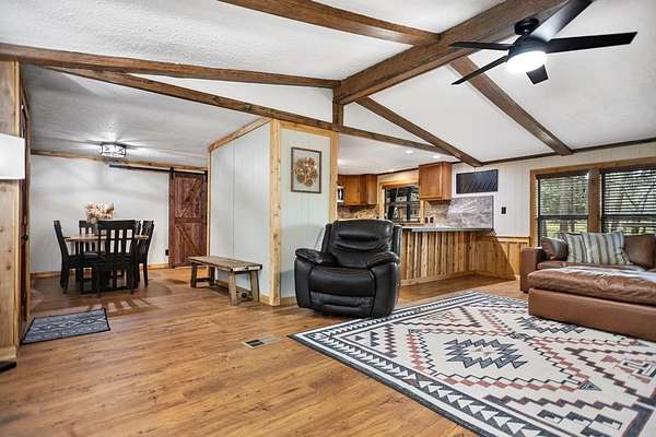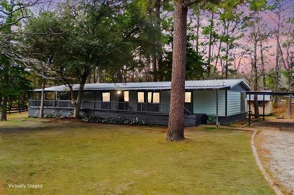 NEW, new, new! Total remodel in a beautiful, modern farmhouse style! Stunning, rolling 4 acres in the country! This home is a must see on a very quiet country road, and encompasses a complete, professionally remodeled home with 3 bedrooms and 2 gorgeous bathrooms (bluetooth speakers in guest bath), island kitchen, all new appliances, alarm system, new extra built ins and separate dining room. A wood burning fireplace and full wrap around porches add a charming vibe to this property. Outdoor amenities include a new metal roof, beautiful pond, partial fencing, a workshop/shed, additional large covered parking/utility area and 2 car attached carport. If you have been looking for a gorgeous affordable home in the country, on land... this could be it! This home has so many extras! Book your private appointment to see this one TODAY!